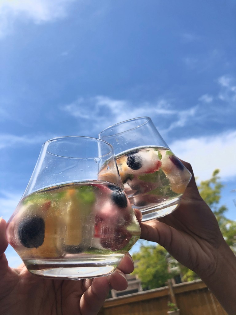 During the summer season comes patios, outdoor dining, sangria’s and the best of fruity cocktails! One way that I’ve upped my at home drink game is with fruit ice cubes!