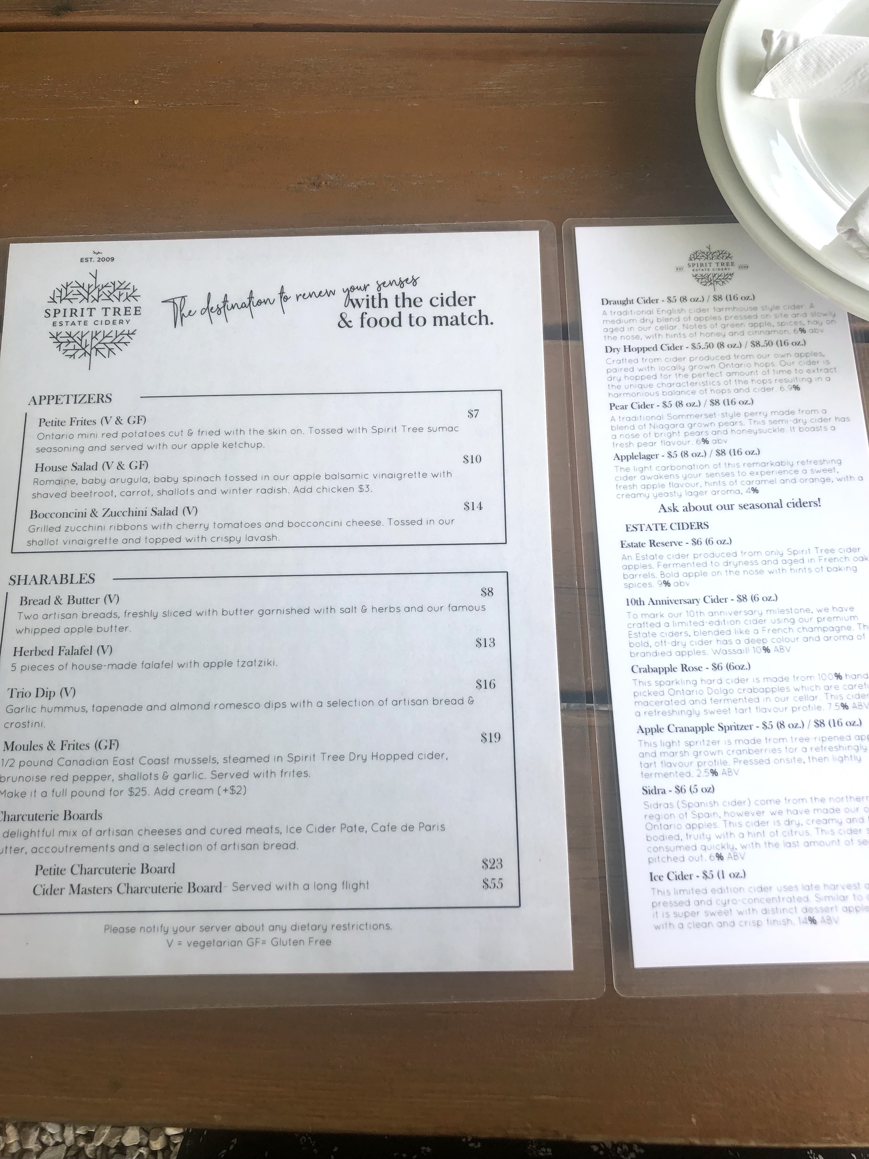 There is a unique patio experience right in Caledon, Ontario! It is a Cidery called Spirit Tree Cidery and they offer cider tasting, a patio with many bistro choices of great food items and a store with many items including sandwiches, dips and pizza on occasional nights!