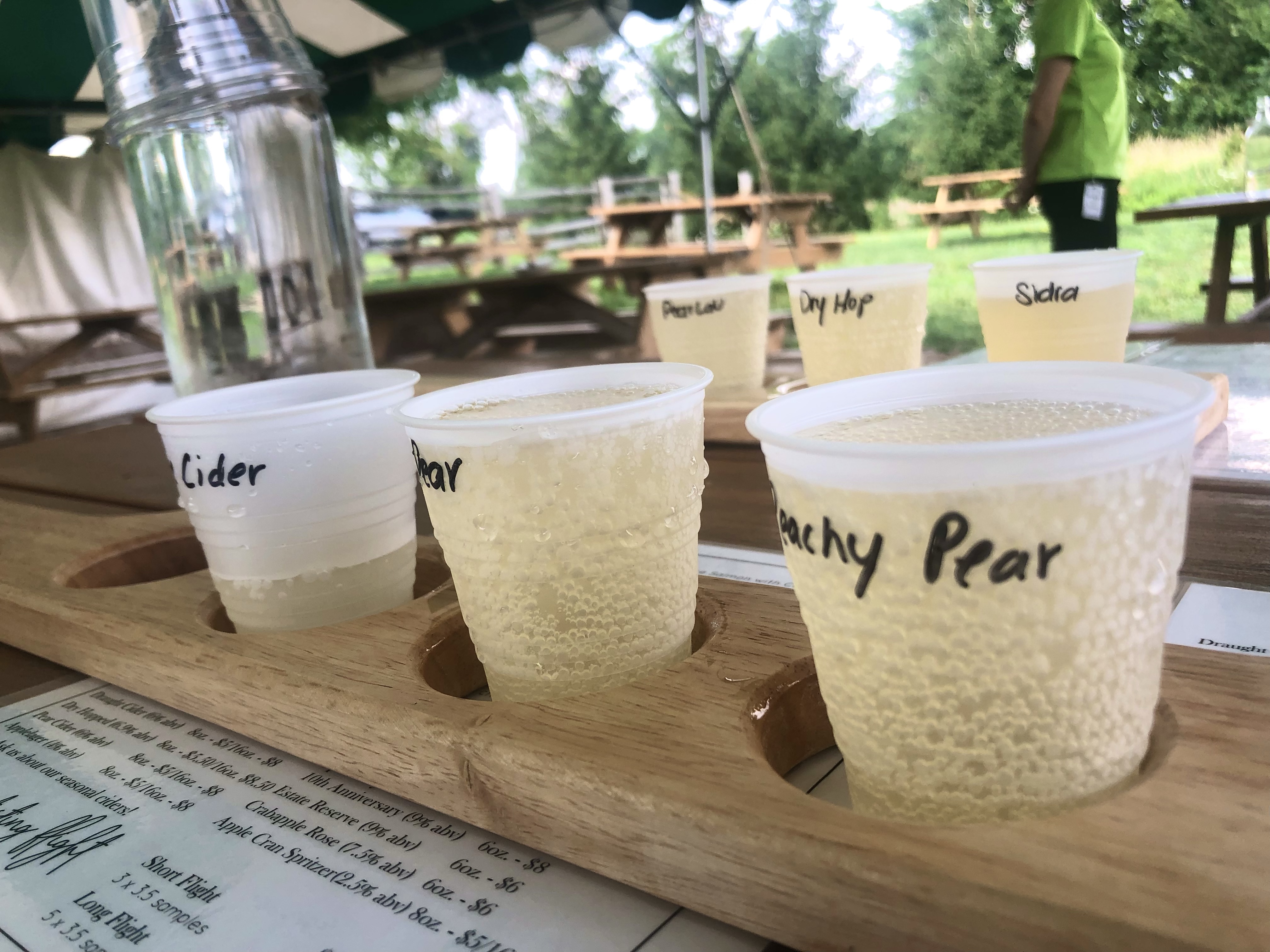 We started by getting short flights of their ciders, this included your choice of 3 different ciders! There was a long list of ciders to choose from, plus their seasonal options! The flight I chose was the Pear Cider, Peachy Pear (which was one of their seasonal drinks) and the Ice cider!