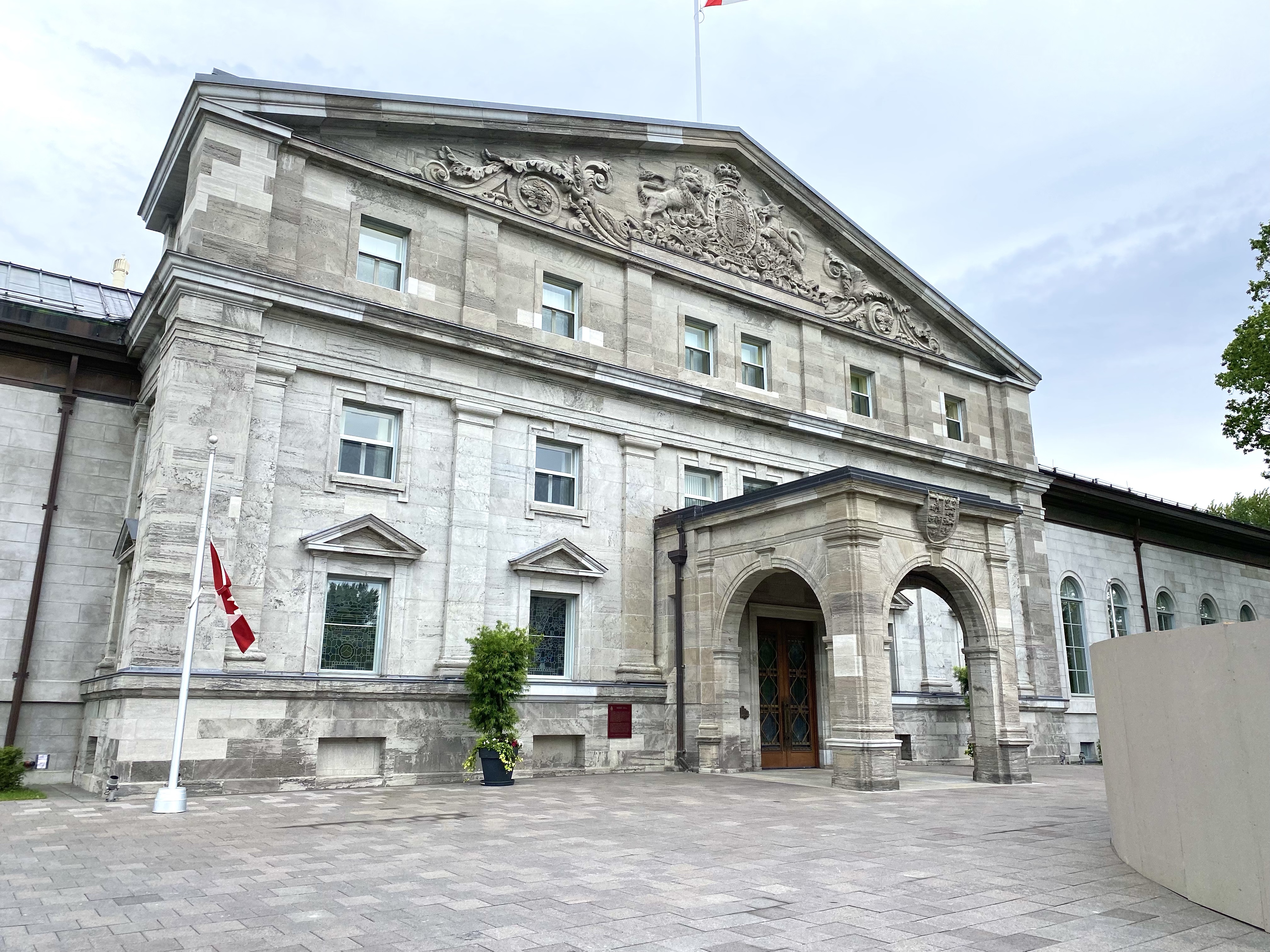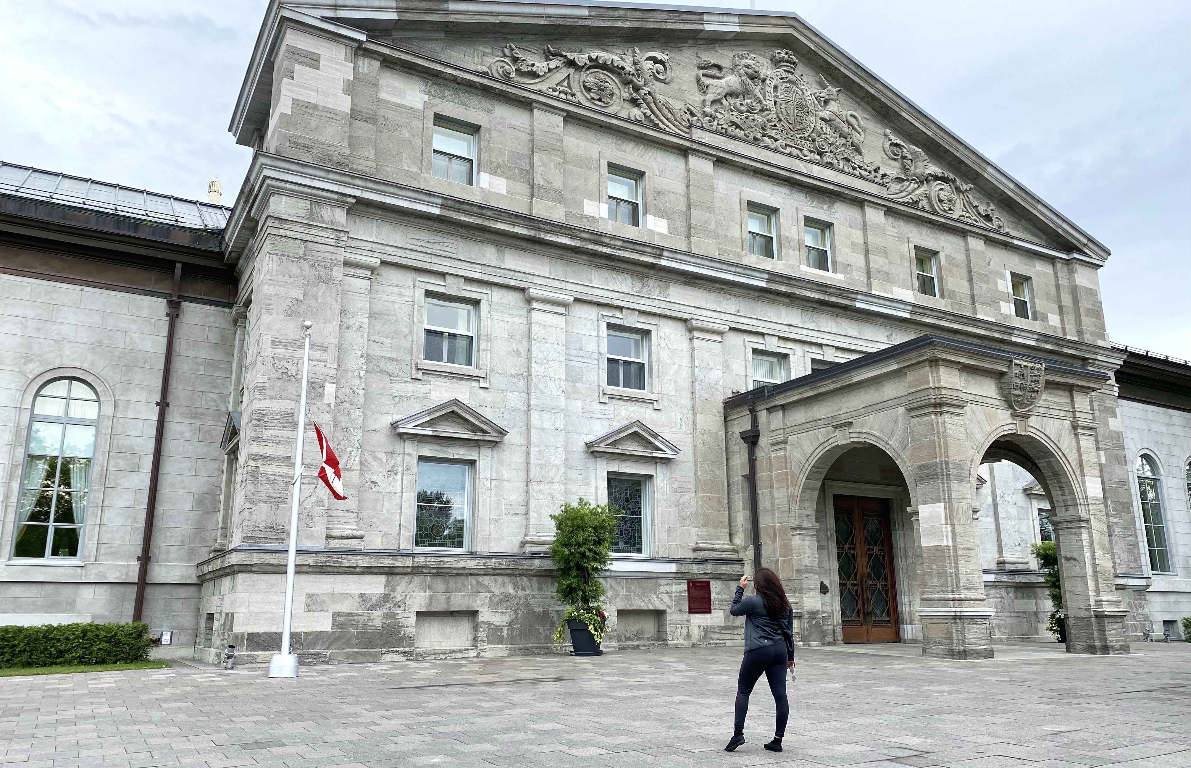 Next, we headed on over to Rideau Hall. This was surprisingly hard to find, there is no parking lot and only one small entrance at the moment, the only place you can enter from is through Sussex Gate, and that is on foot. You will need to find valid parking in one of the nearby streets, and walk in, the walk to Rideau Hall is about 8-10 mins, it isn’t a hard walk by any means and you are able to see some of the sculptures they have nearby as well. Rideau Hall itself is beautiful, the fountain that is usually working is currently under construction but the building itself is really grand and extravagant, there are these huge doors and carving that make it feel very regal! The main purpose of this building is to hold the offices of the Governor General, there are 175 rooms and it is 102,000 sq ft! It is free to enter and explore the grounds, currently tours have been stopped due to covid!