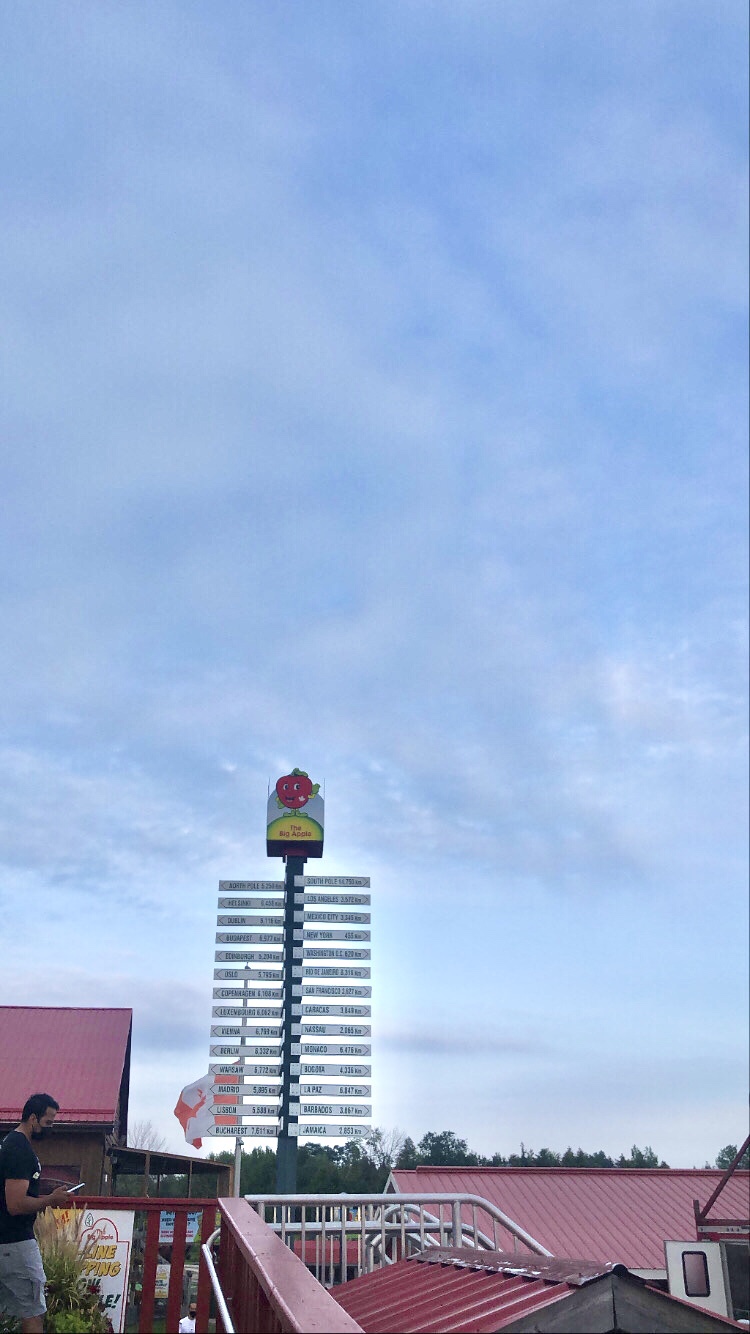 I saw so many people, visiting and enjoying this highly kid-friendly place, I just had to visit it myself! It is located in Colborne, Ontario. It was easy to find and right off the highway, the entrance was visible and you knew you were there by seeing the big figure of the apple!