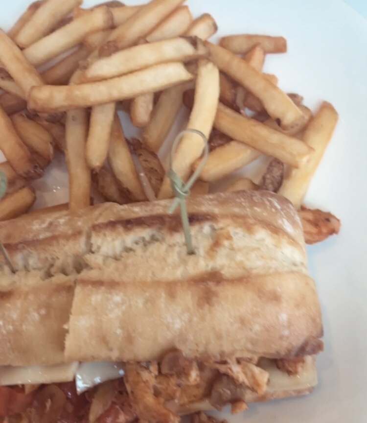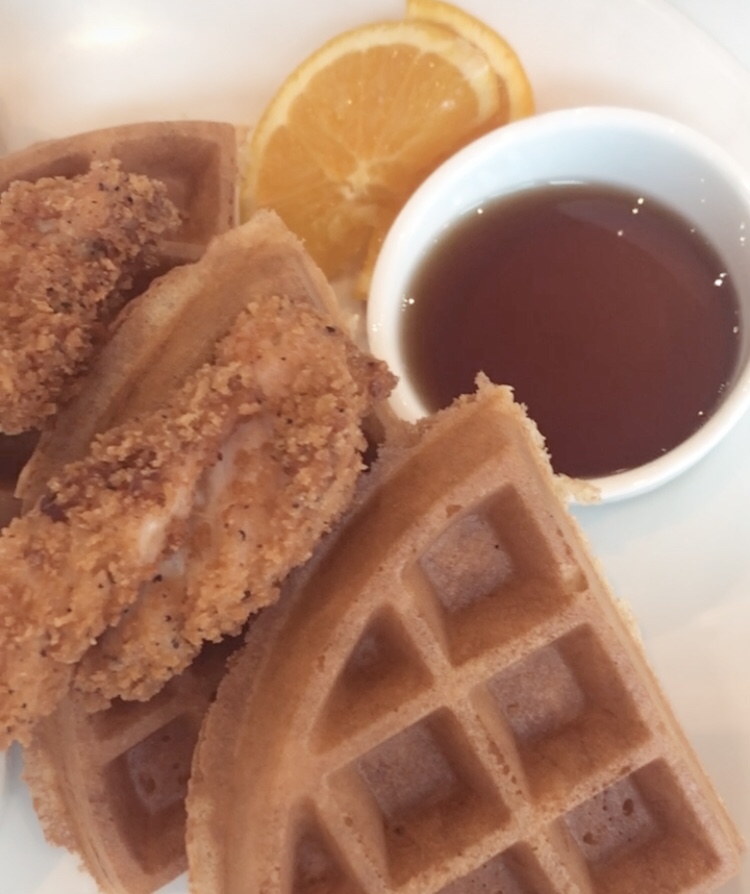 With so much to choose from, I decided to go with the chicken and waffles, as well as the Chicken Chili Aioli! They were both so tasty! The chicken and waffles came with maple syrup, some fresh fruit and sour cream! It was the perfect comfort food! The Chicken Chili Aioli was a pleasant surprise, it was definitely a lunch item and was so tasty! It came with fries and paired perfectly!