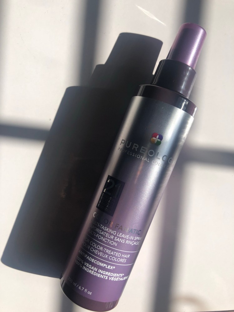 There are many types of leave-in sprays, if your hair concern is dryness, try a leave-in spray that hydrates like a leave-in conditioner! The one I frequently use is again to lock in that hair colour and keep it from washing out! I like to use the Pureology Colour Fanatic spray! It helps to keep my hair looking vibrant without weighing it down!