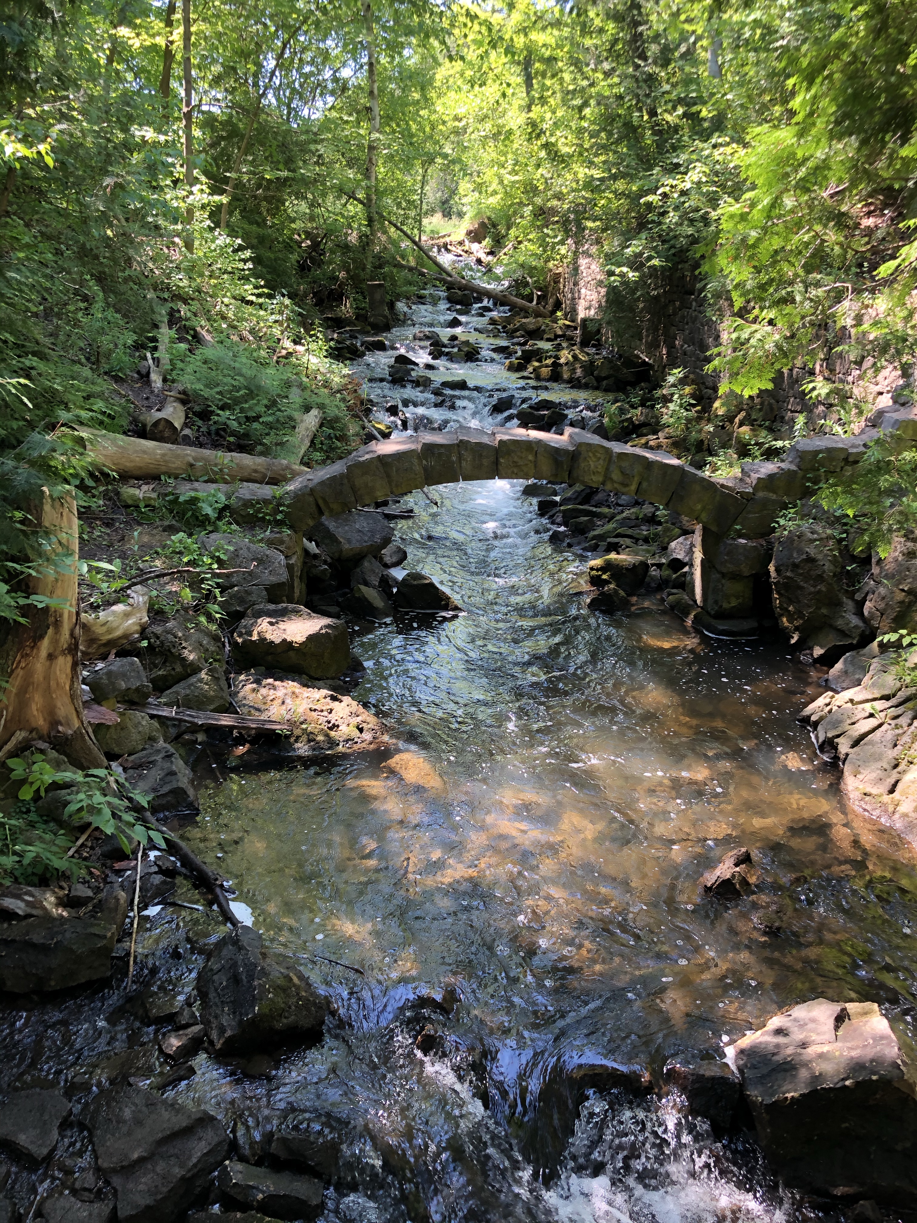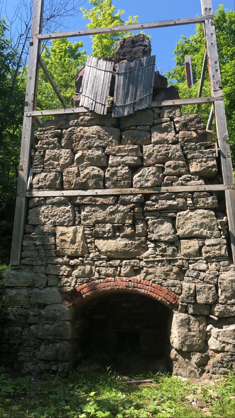 There is a small space that is the walk through to continue on the trail! Right after continuing from the cave you are immediately met with a steep decline! Take your time and make your way down the hill, this is by far the toughest part of the hike! After this, the hike is a bit flatter and easier to walk! Next, the mill ruins are a main attraction for this area, there is a Lime Kiln that is so much bigger than I thought it would be and very interesting to look at! There is also a powder house that has a very interesting background, it was used to store all the explosive power that was used to break up the large amounts of limestone that was present!