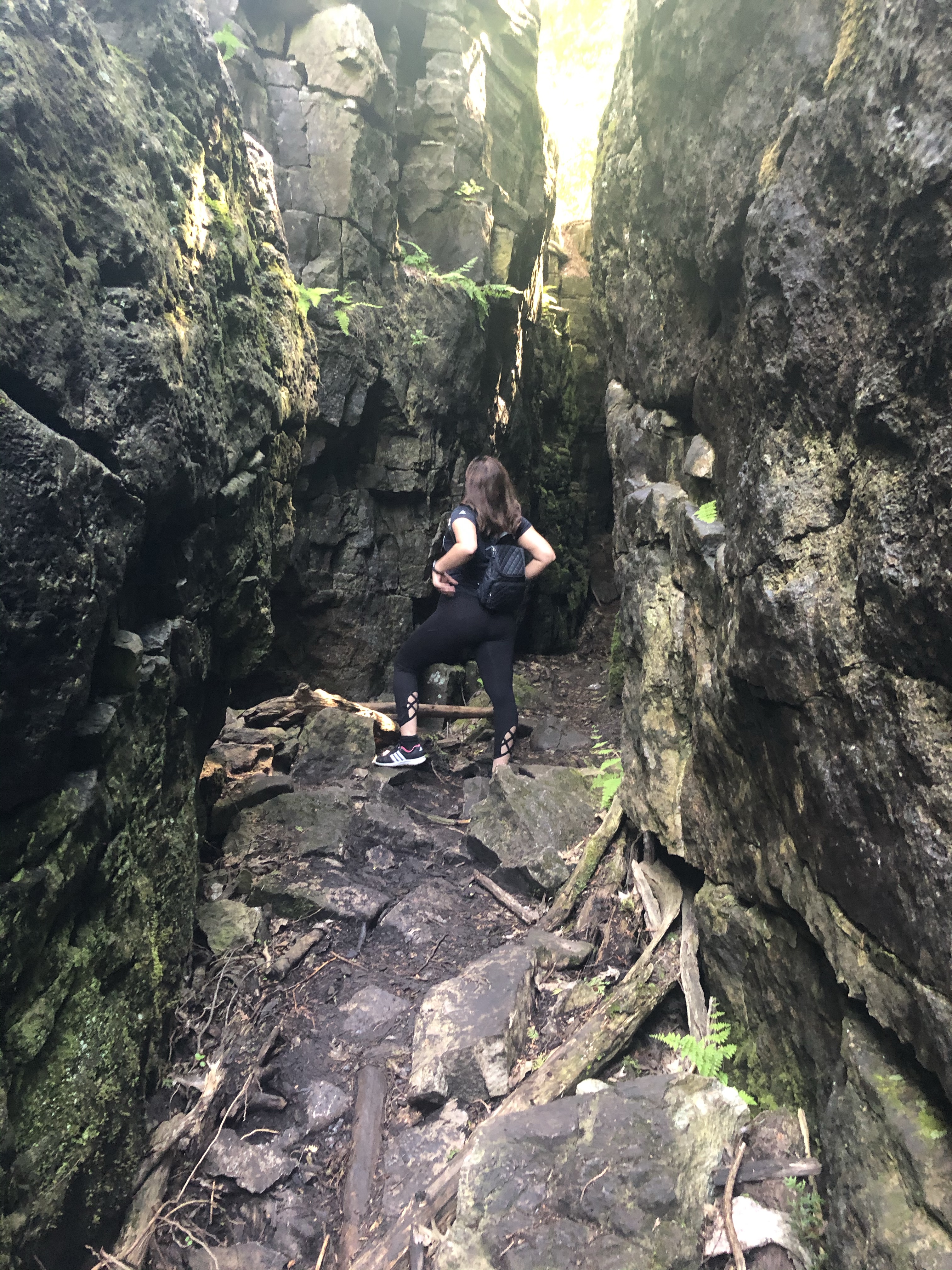 First, about halfway into the trail you will see the “hole in the wall”, this is a cave-like rock formation that you need to climb down using the ladder and then walk through to continue on the trail! The climb down is just a few steps, but you can instantly feel the drop in temperature! It is really nice to get a break in this cooler temperature! The rock formation does have a lot of moss due to the condensation of the cooler temperature mixing with the warm so definitely watch your step!