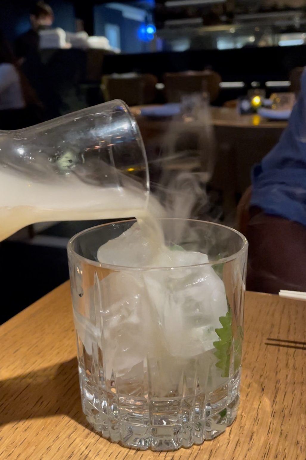 For drinks, we got Flor de Manzana and He’s so Smoking! The Flor de Manzana, has vodka and sake then it is sweetened with passionfruit and apple then topped off with a beautiful elderflower. This drink is so beautiful and perfect for photos, it is a bit sweet and has a nice balance! If you want a dramatic drink definitely go for He’s so Smoking! This drink has tequila, peach, ginger, lapsang, yuzu, shiso and liquid smoke! If you aren’t a fan of tequila, but still want the effect of the smoke, try She’s So Smoking, this drink has cognac instead of tequila!
