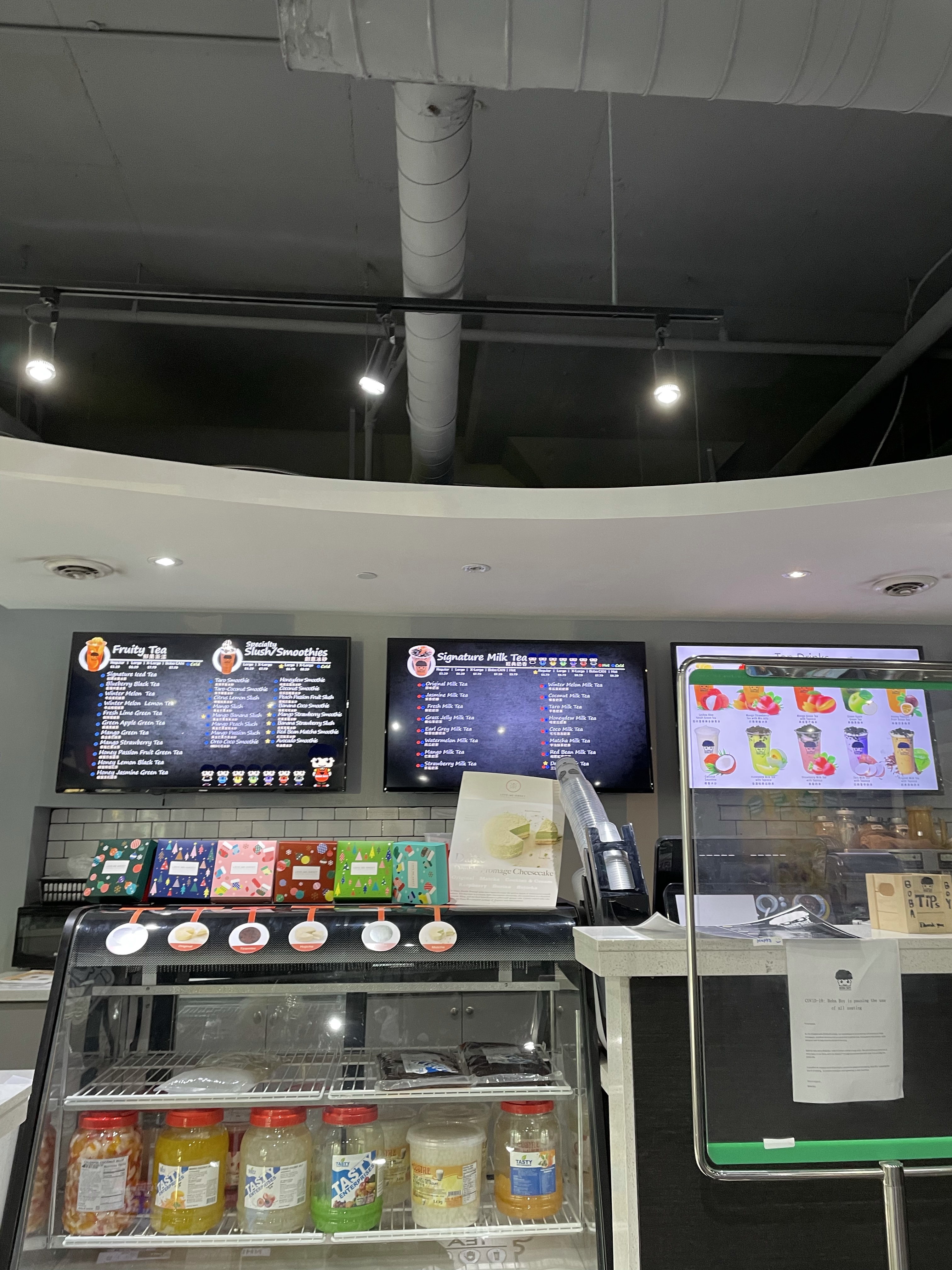 Boba boy had so many options to choose from! They had so many milk teas, like their watermelon milk tea, jasmine milk tea and black sugar milk tea! There were fruit slushies and smoothies in all different flavours like citrus lemon, banana coco, bobacado aka avocado and lychee coconut! There are also many flavoured green and black fruit teas! These are definitely my personal favourites, there is mango green tea, lychee-aloe green tea, blueberry black tea and much more!
