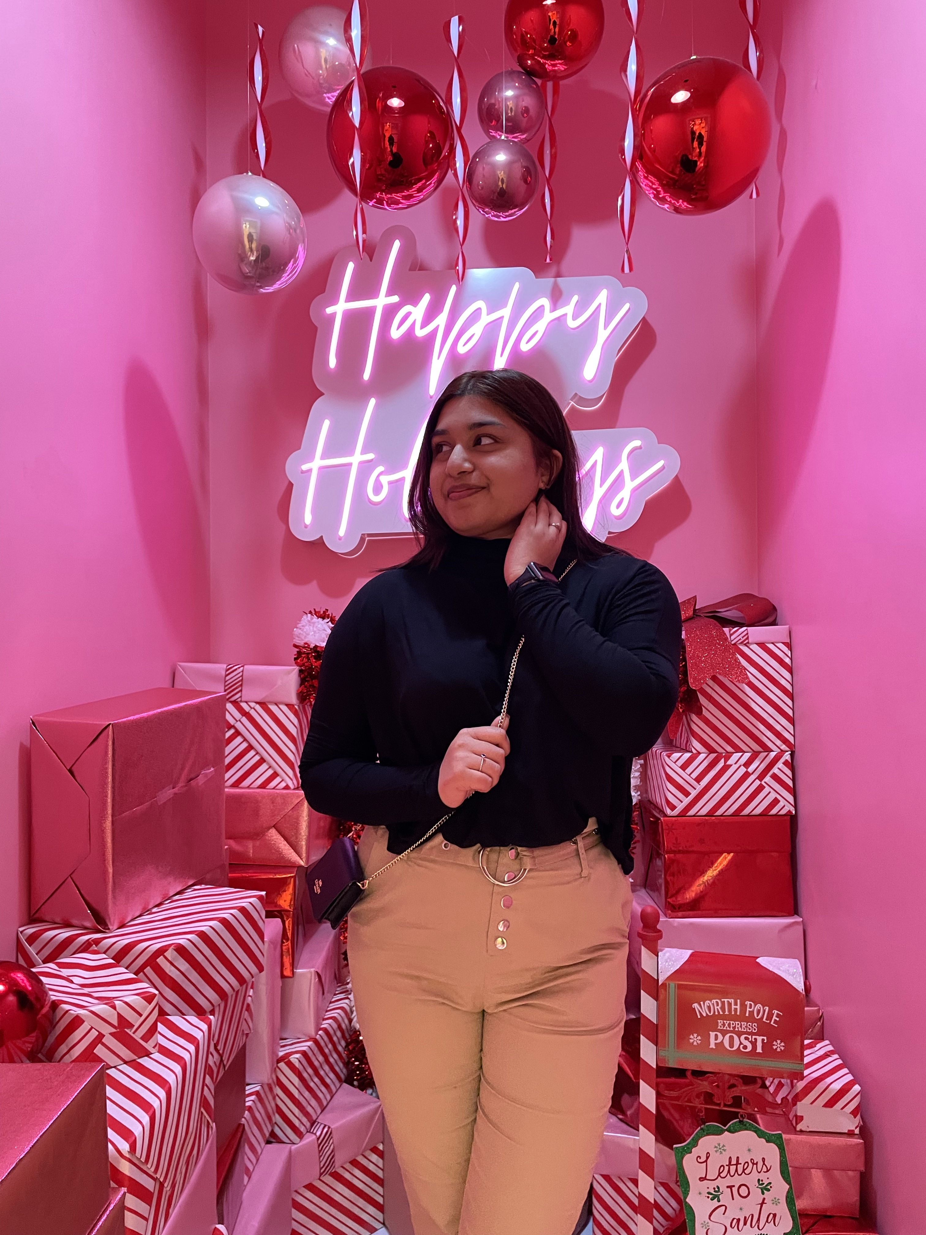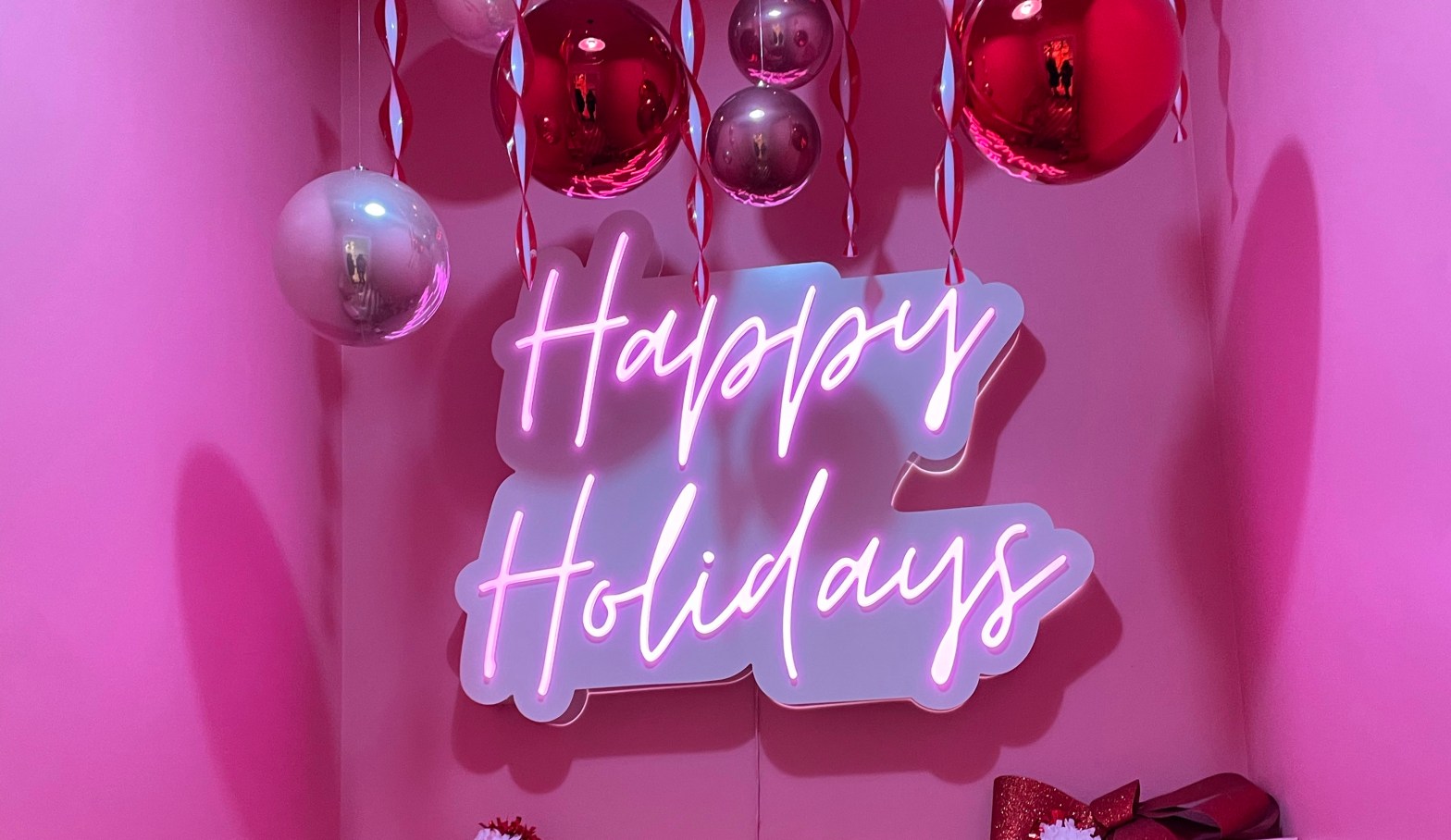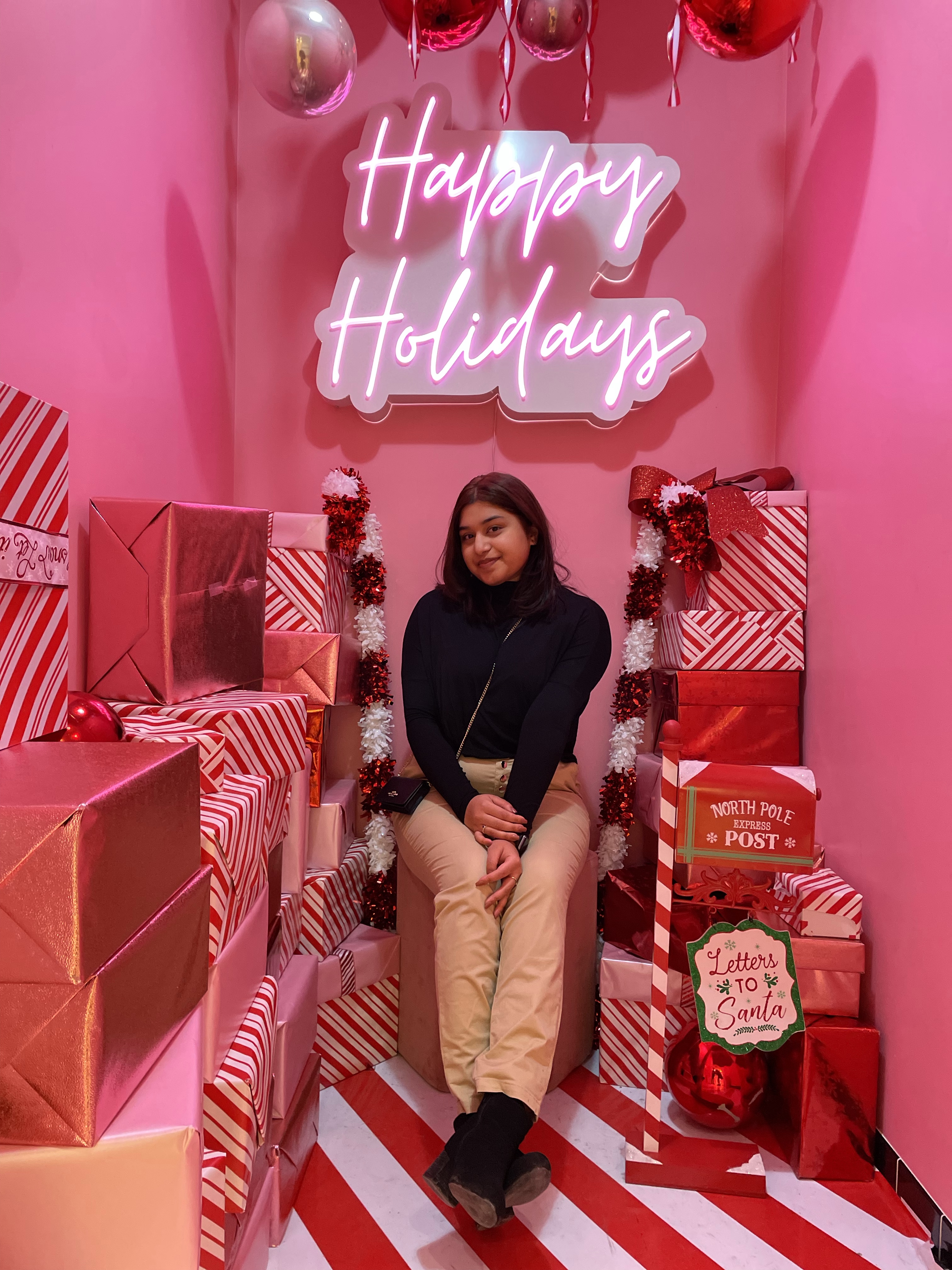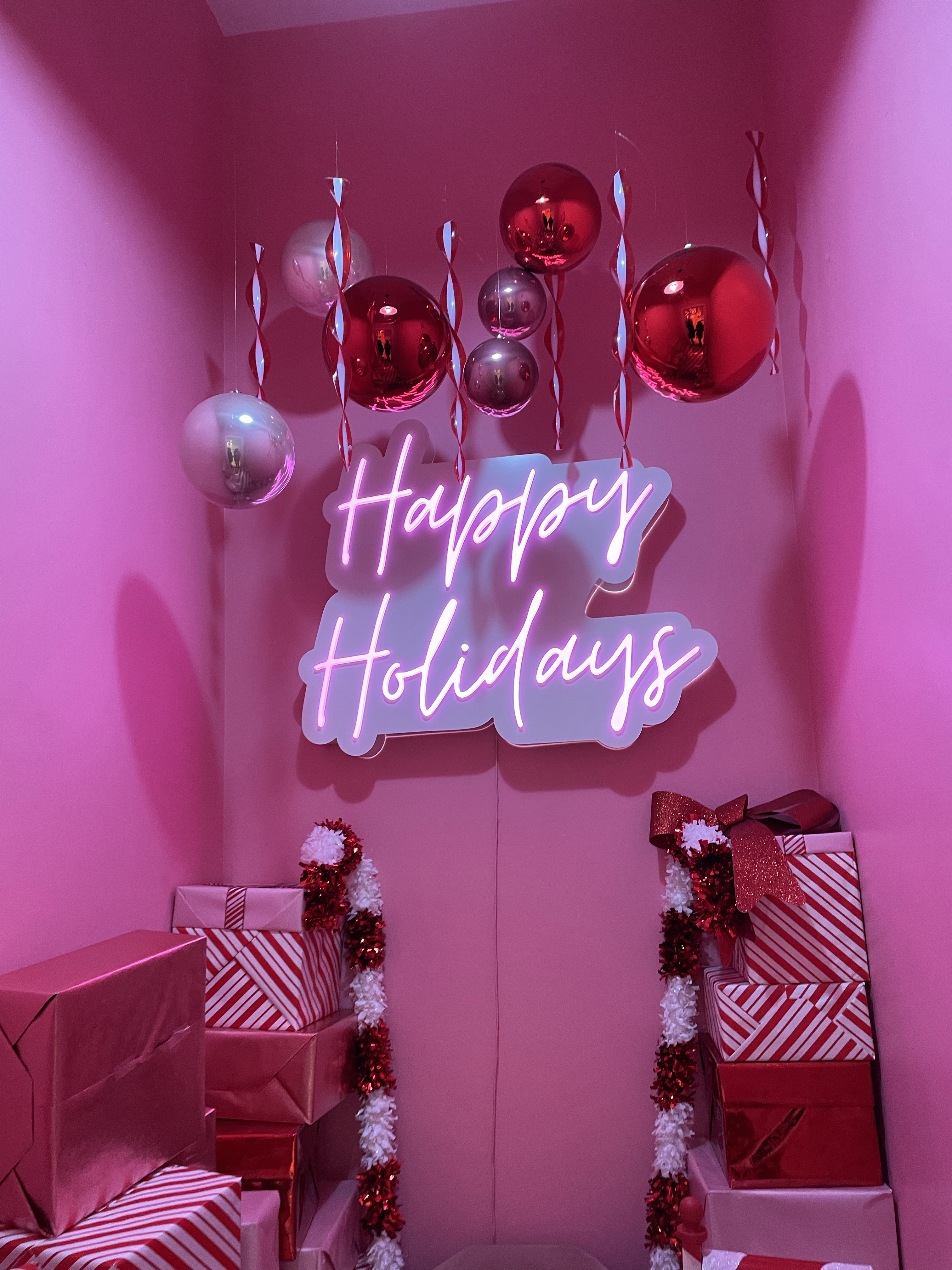 Lastly, when you walk towards the back of the store, there is an entire area that is made for photo ops! There are three small rooms that are decorated differently for you to take the cutest photos! One has a beautiful ‘Happy Holiday’s’ neon sign and you are surrounded by presents!