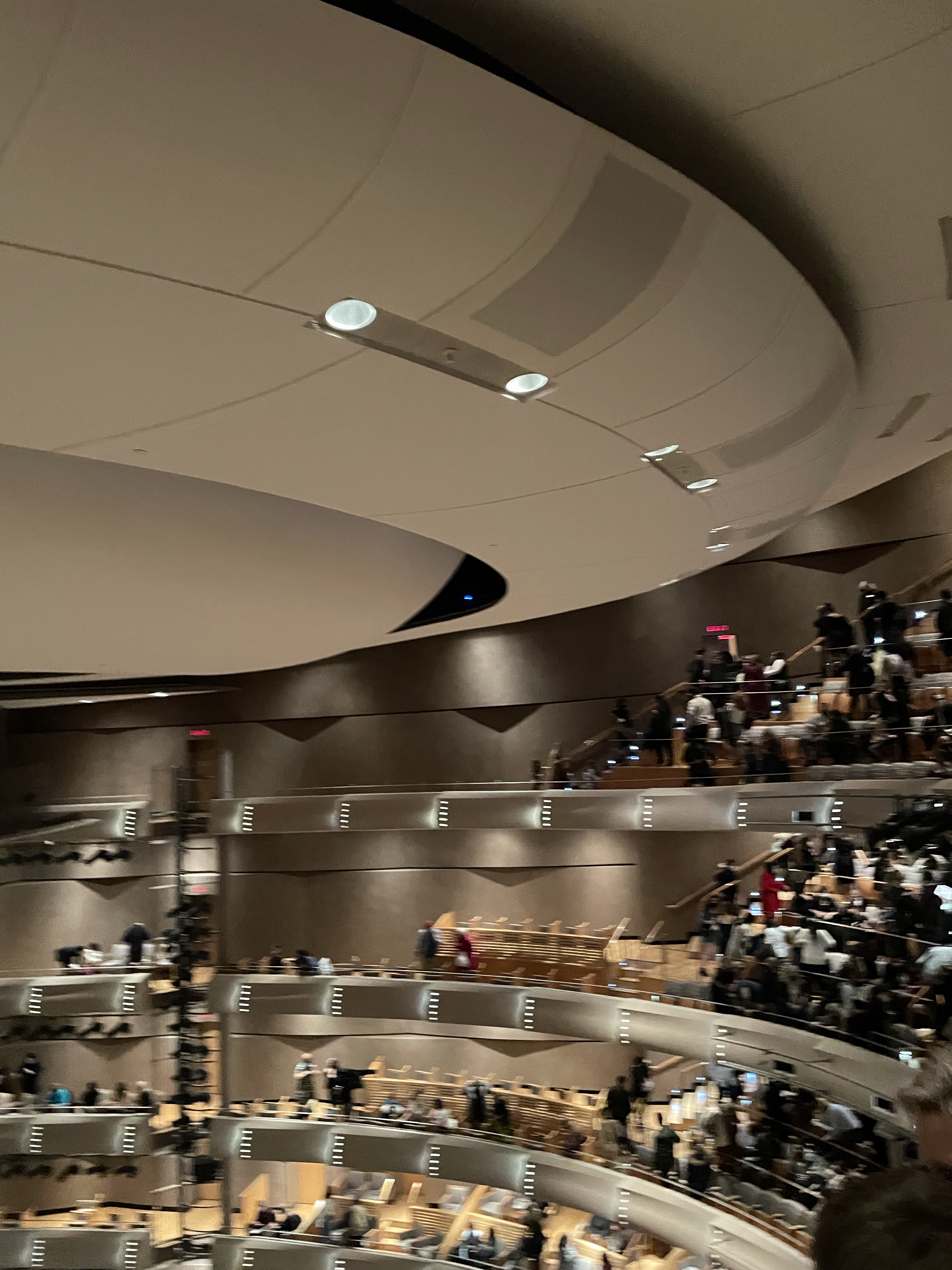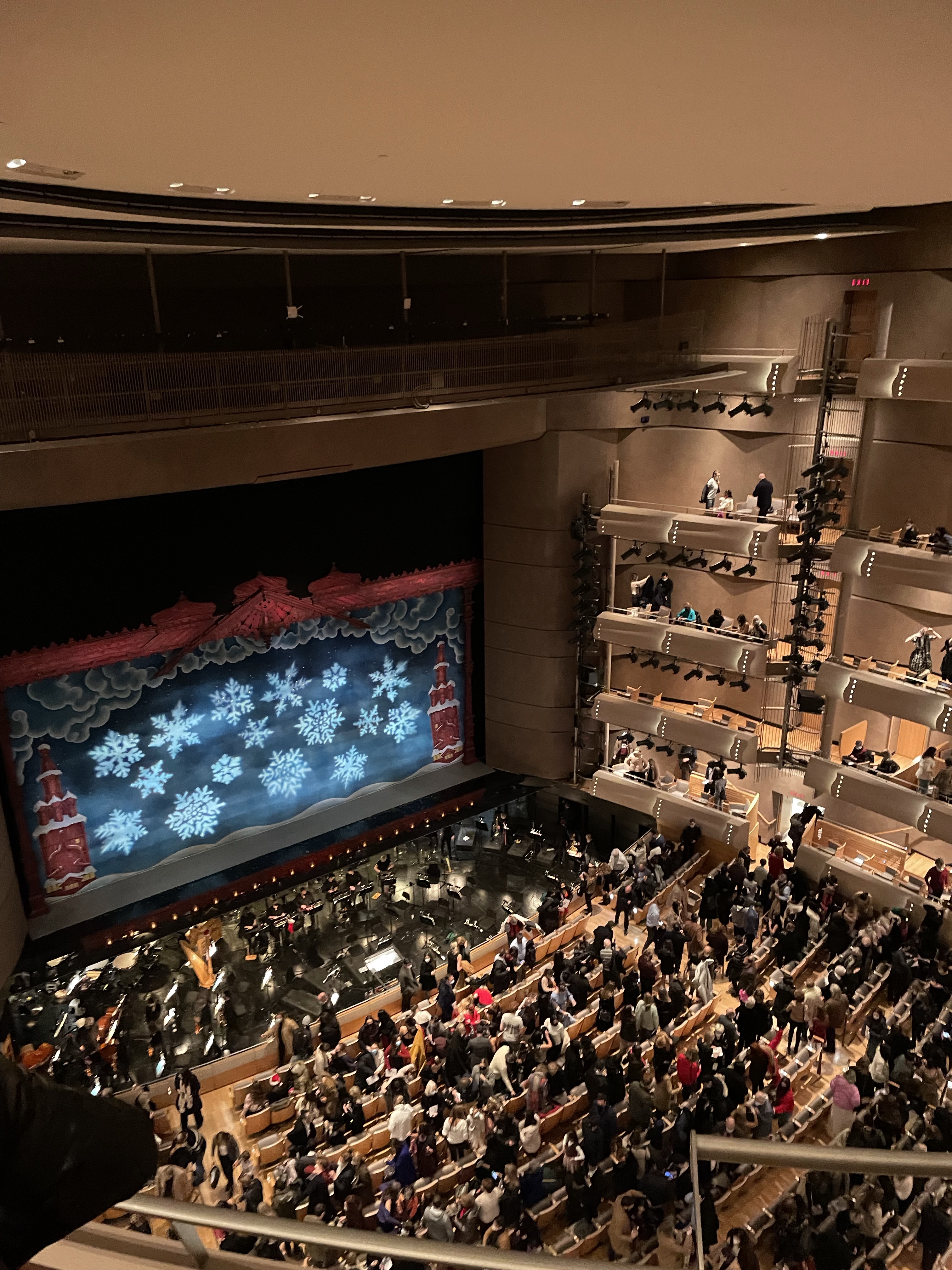 We had some time to kill before heading into the theatre, so we picked up some refreshments. There were some cookies and treats, as well as soda, wine and other light snacks for sale! We got a cookie as well as a glass of wine and enjoyed a bit more of the atmosphere before heading inside. There was an announcement as well as a bell to indicate we had 5 more minutes to make our way into the theater. We took the elevator to our level and went through our designated door. Our seats were pretty easy to find.