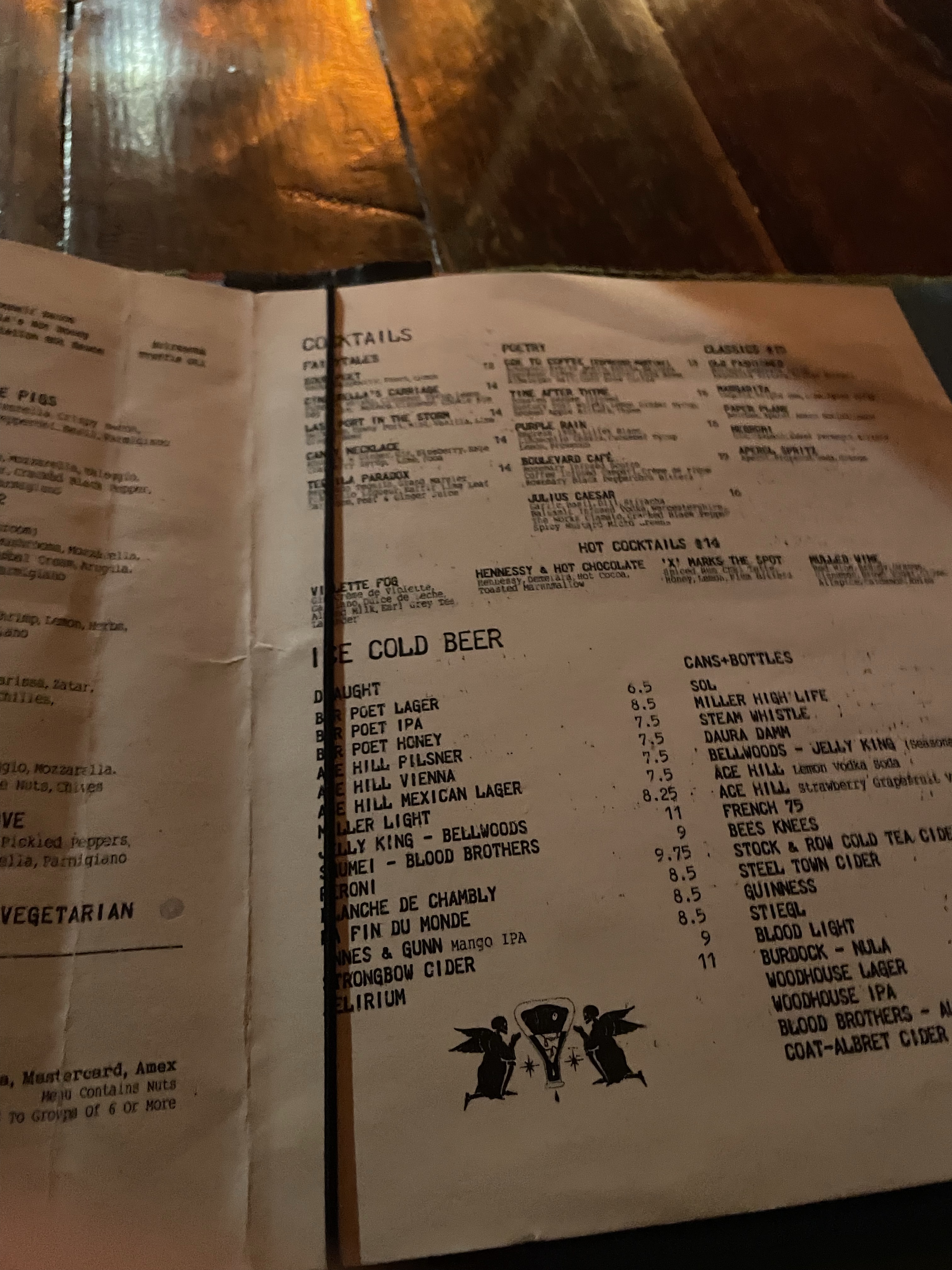 I recently visited Bar Poet in Toronto and it had an absolutely fantastic vibe, it really is not very big but it has an amazing atmosphere, good eats and innovative drinks! I made a reservation about a week in advance which was needed because this restaurant was small and incredibly busy! There wasn’t a restricted amount of time that we could stay, most restaurants cap your visit at 2 hours during peak times, however this wasn’t the case with Bar Poet, which I really appreciate, you don’t feel rushed at all!