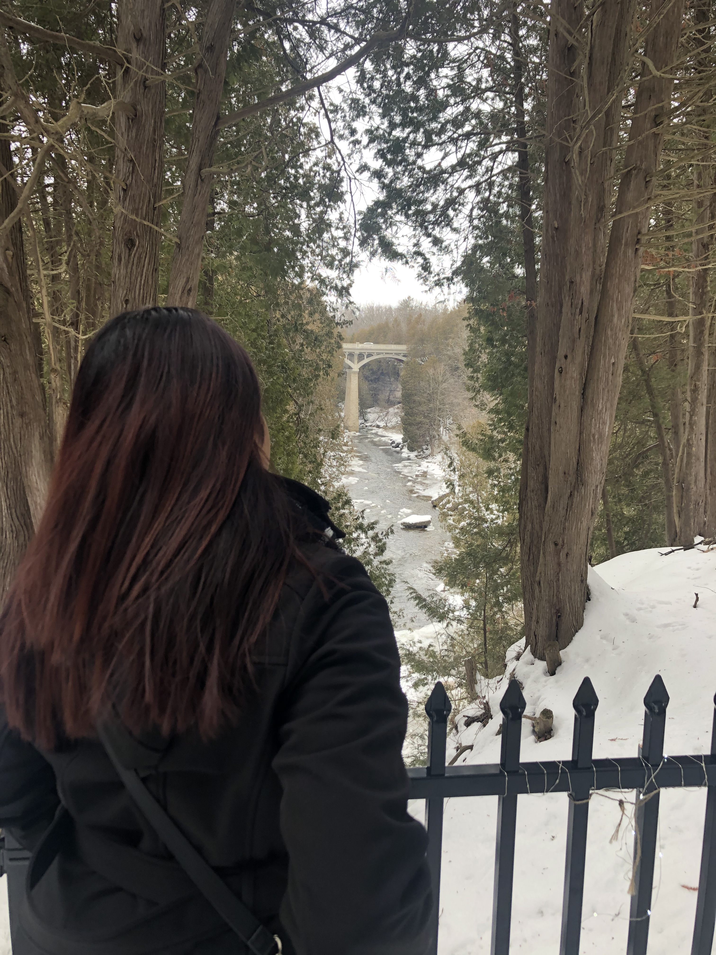 This town screams small town charm from the minute you enter, there are different things to sightsee and small business and food spots to check out! In the winter there is a really beautiful park, there are small short trails with some really gorgeous views! When it isn’t too icy out, you’re able to access the lookout point where you are able to see the gorge river! The lookout is called Lovers Leap, you’re able to see where the gorge river connects with the Irvine Creek! In the summer you are able to take a stairwell down to the riverside which also has some really great views!