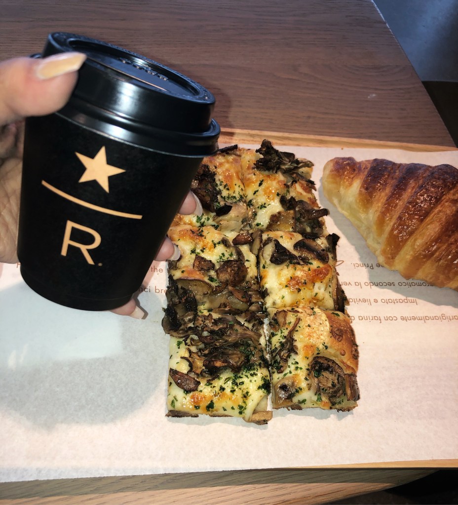 The second floor is a twist on an Italian bakery, it brings together bakery items and coffee in the most amazing ways possible! There is a long bakery window with fresh food items! There were croissants, pizza, pastries, food and so much more! My absolute favourite item was the funghi (mushroom) pizza! It was so light, airy, yet soft and full of flavour! I’m not a huge fan of tomato sauce and this pizza had an olive oil crust which was right up my alley! There was fresh bread, desserts like cookies, raspberry cheesecake and so much more! There were also many different drinks that were exclusive to the roastery. I chose the Hazelnut Bianco Latte! This is made with espresso and house-made hazelnut praline-infused milk! While it was really delicious, I preferred it iced!