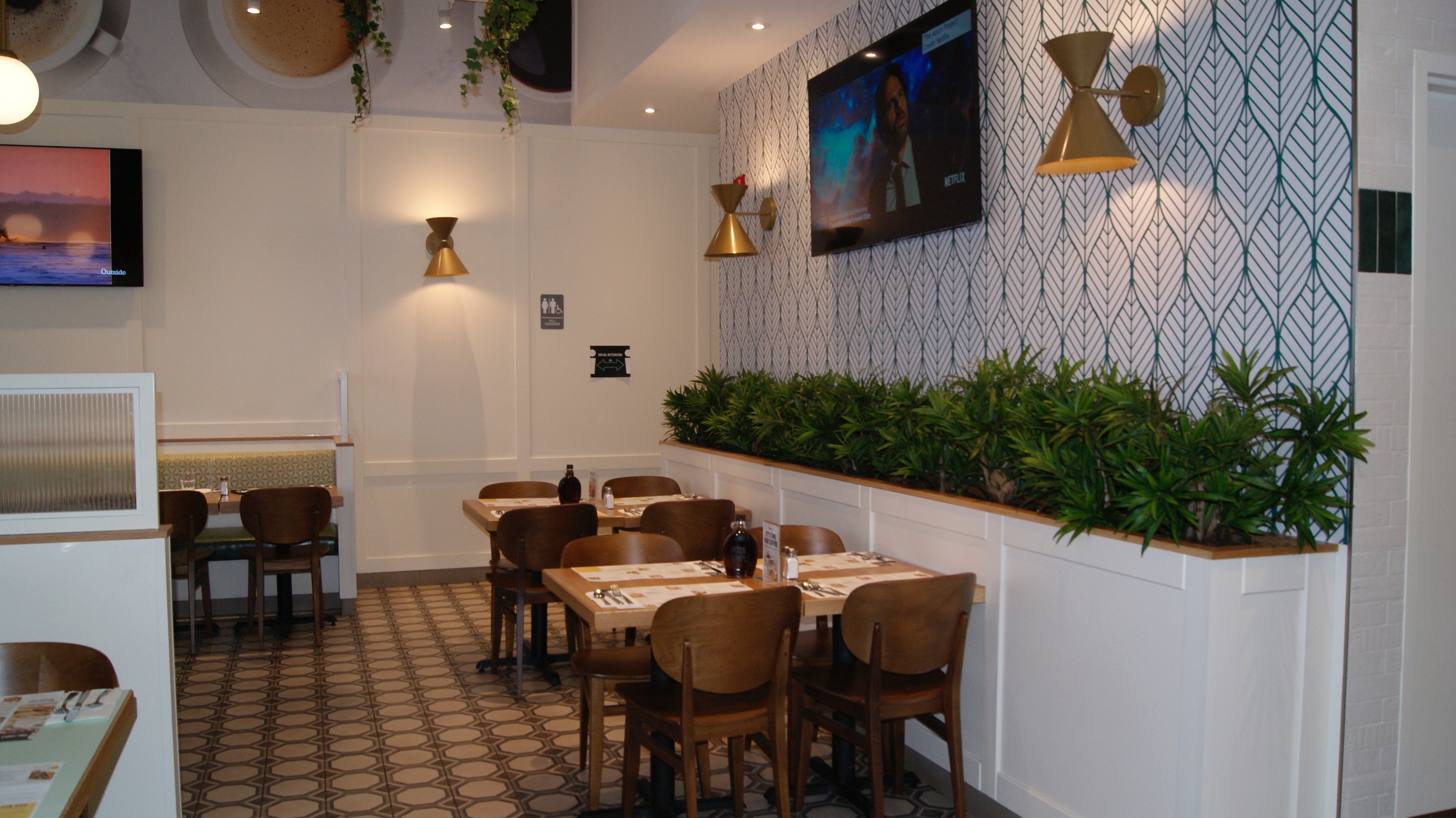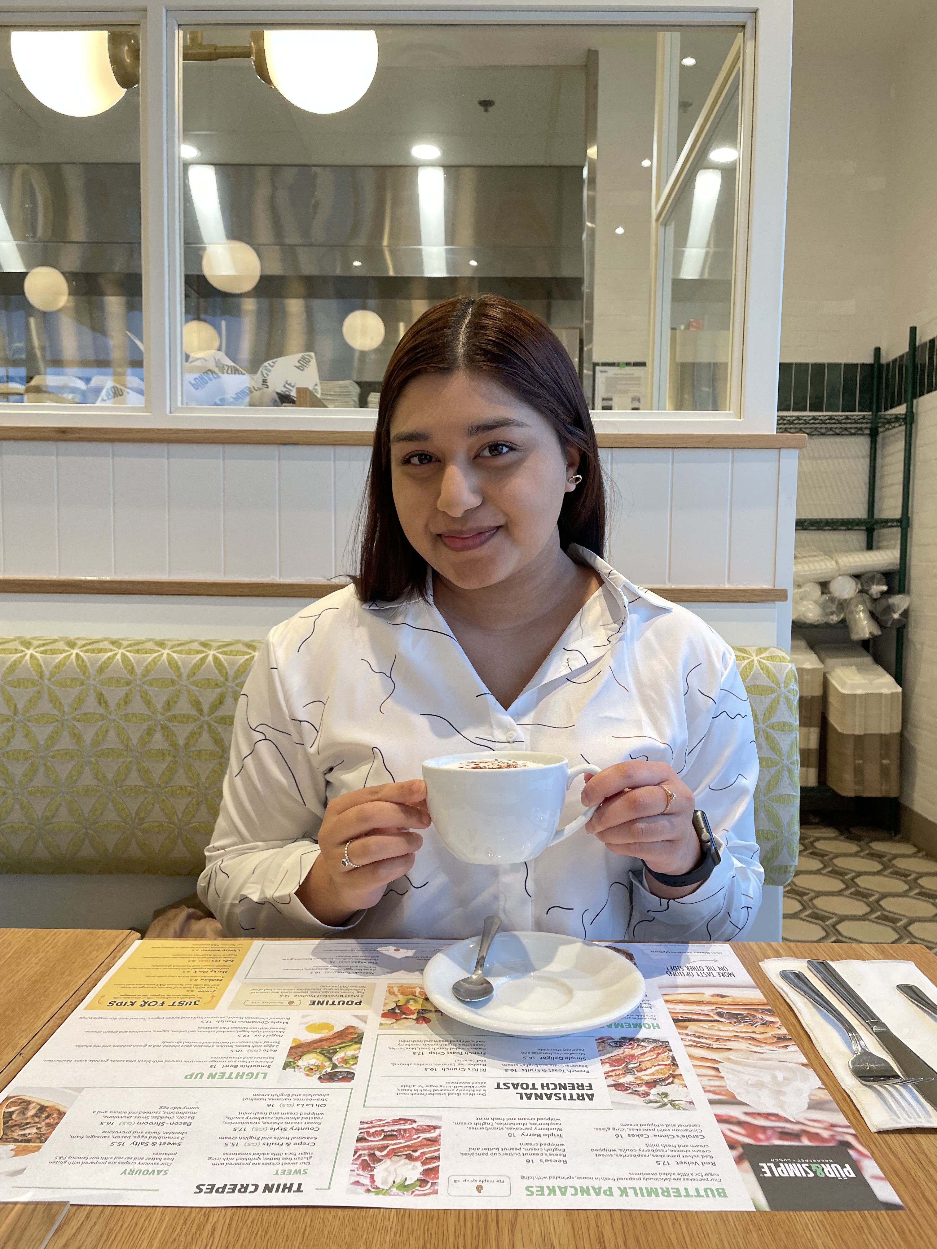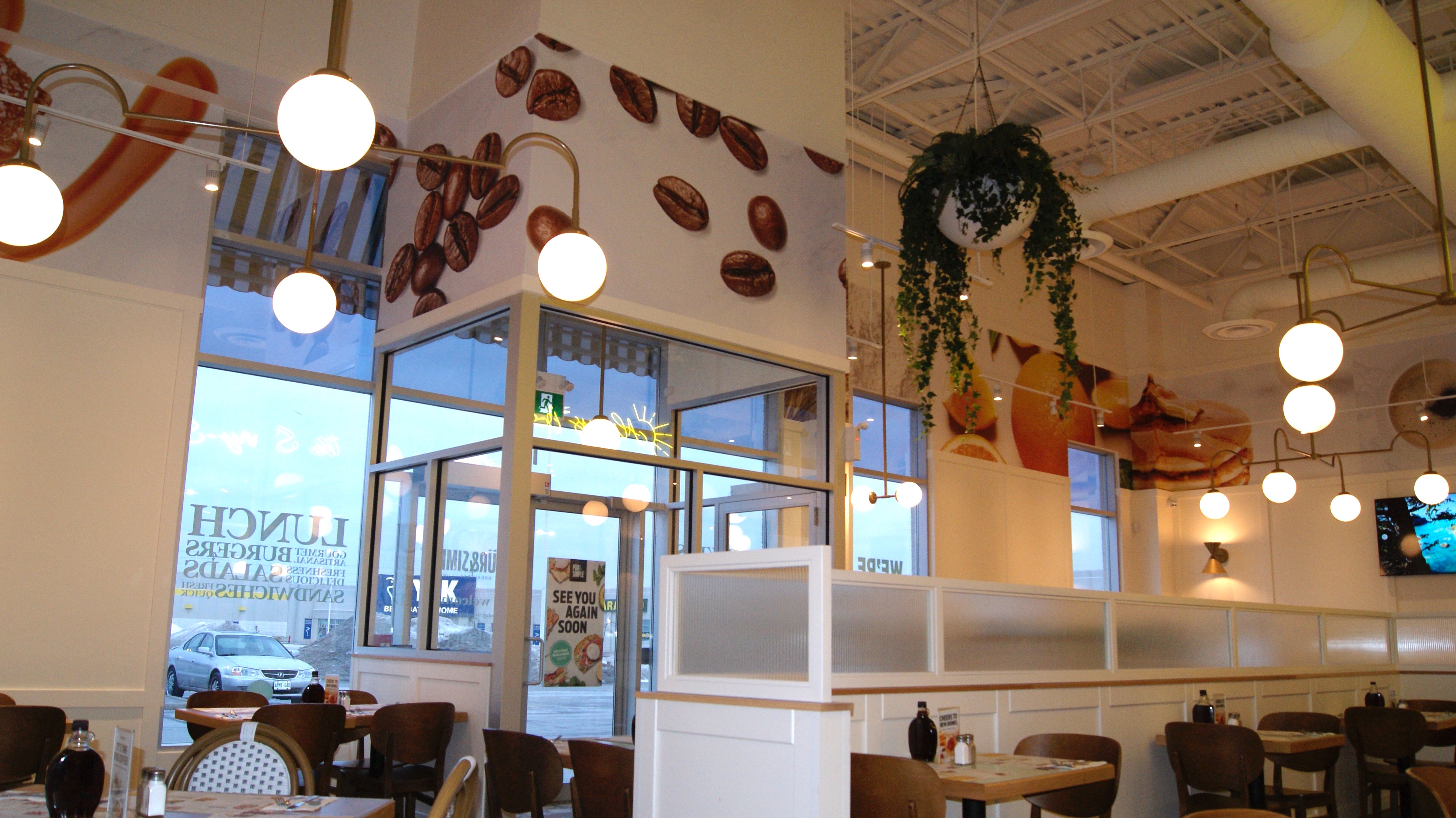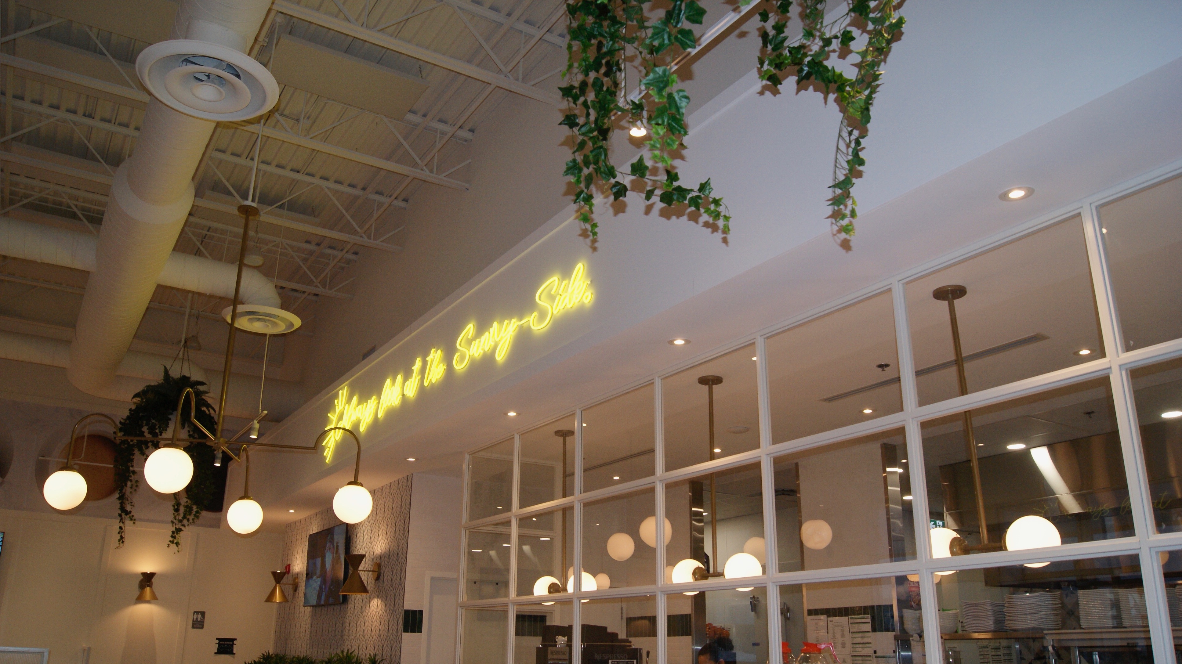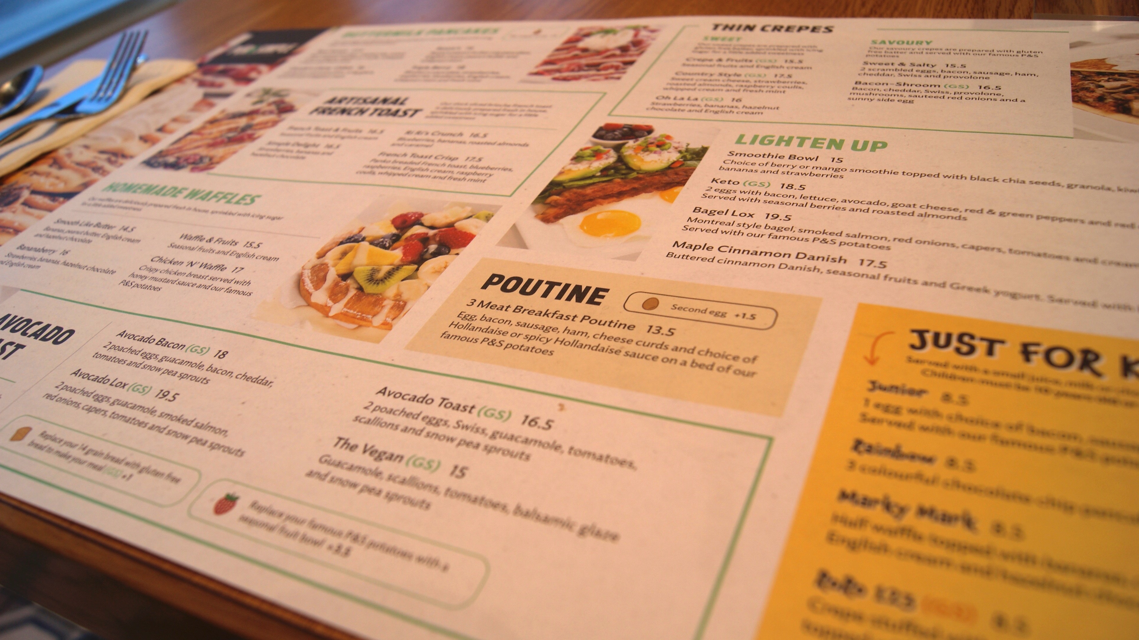 First off, as soon as you walk in the decor is so bright and fresh! There is a green, white and yellow theme just adding to the overall fresh and clean feel of the entire restaurant! There are accent walls and an LED sign that says “Always look at the Sunny Side” which is so refreshing and a positive gesture to begin your day!