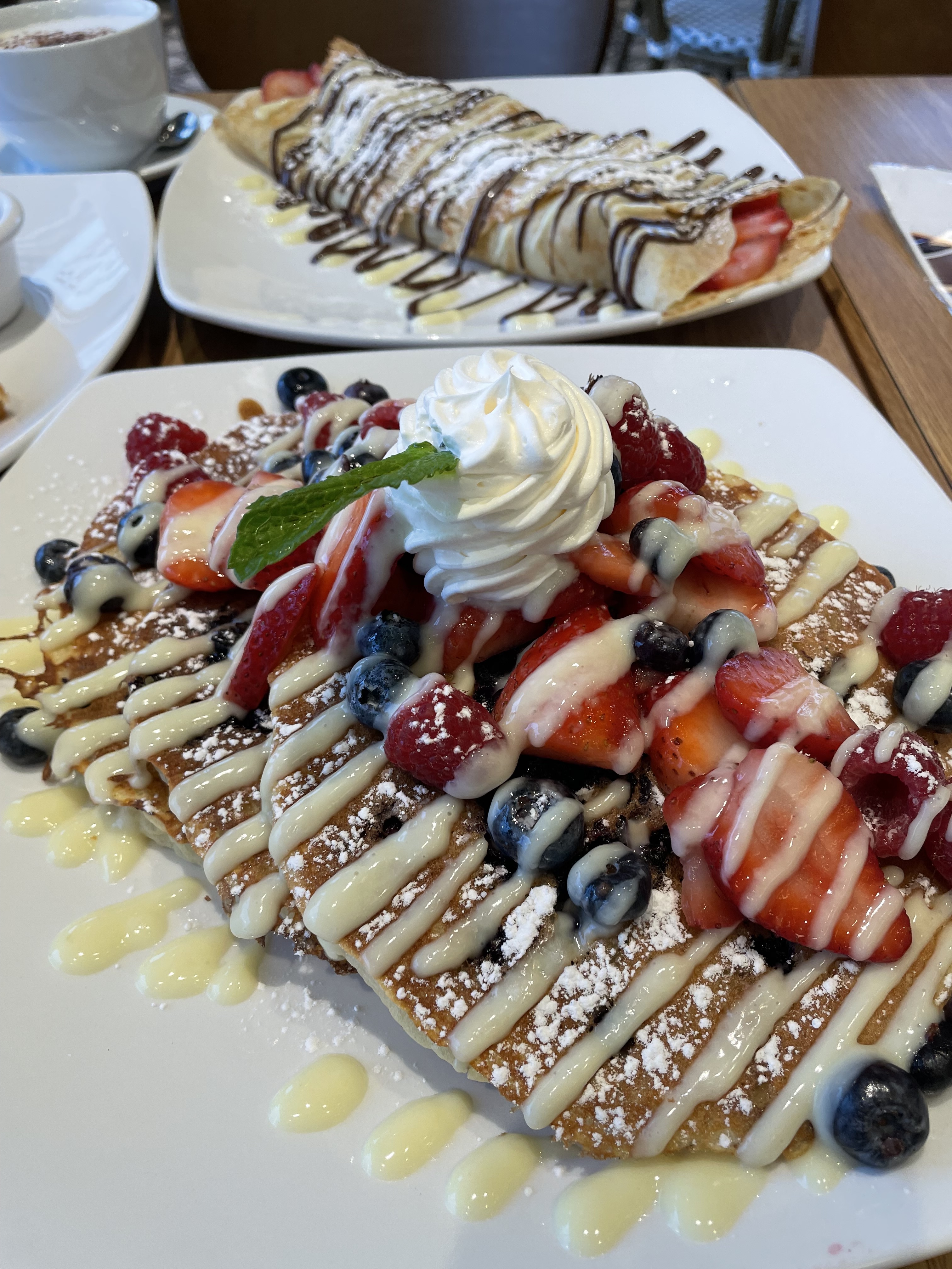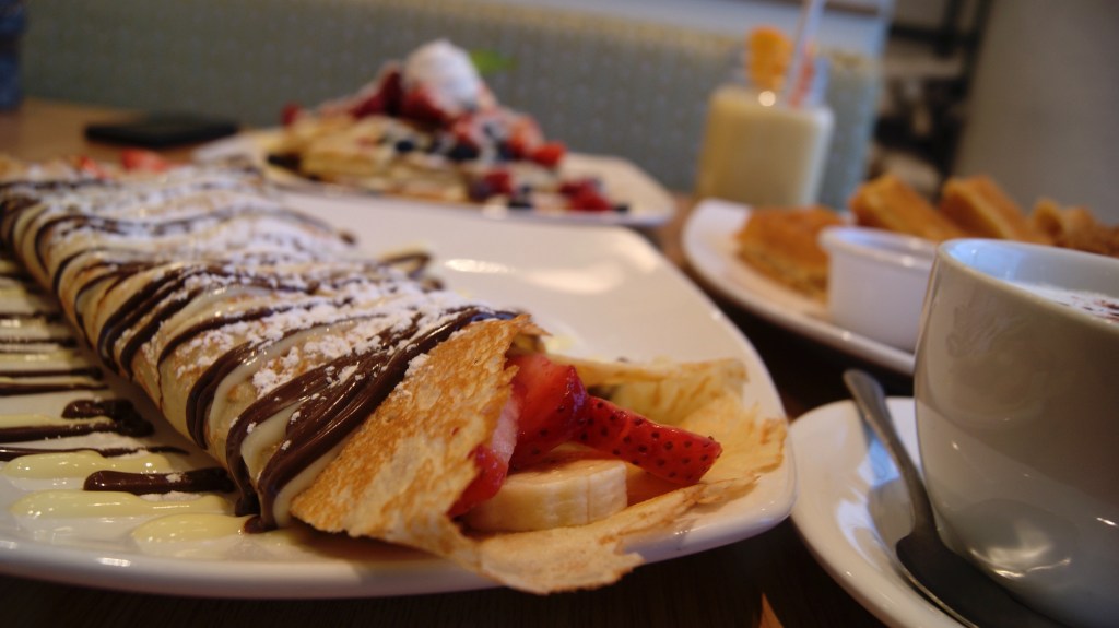 Lastly, I got the Oh La La crepe, this gorgeous crepe has strawberries, bananas, hazelnut chocolate and English Cream! This was again another beautifully presented dish, it tasted just as good as it looked! The crepe was the perfect texture and really thin and light! The fruits were so sweet and fresh! It really does not get better than this!