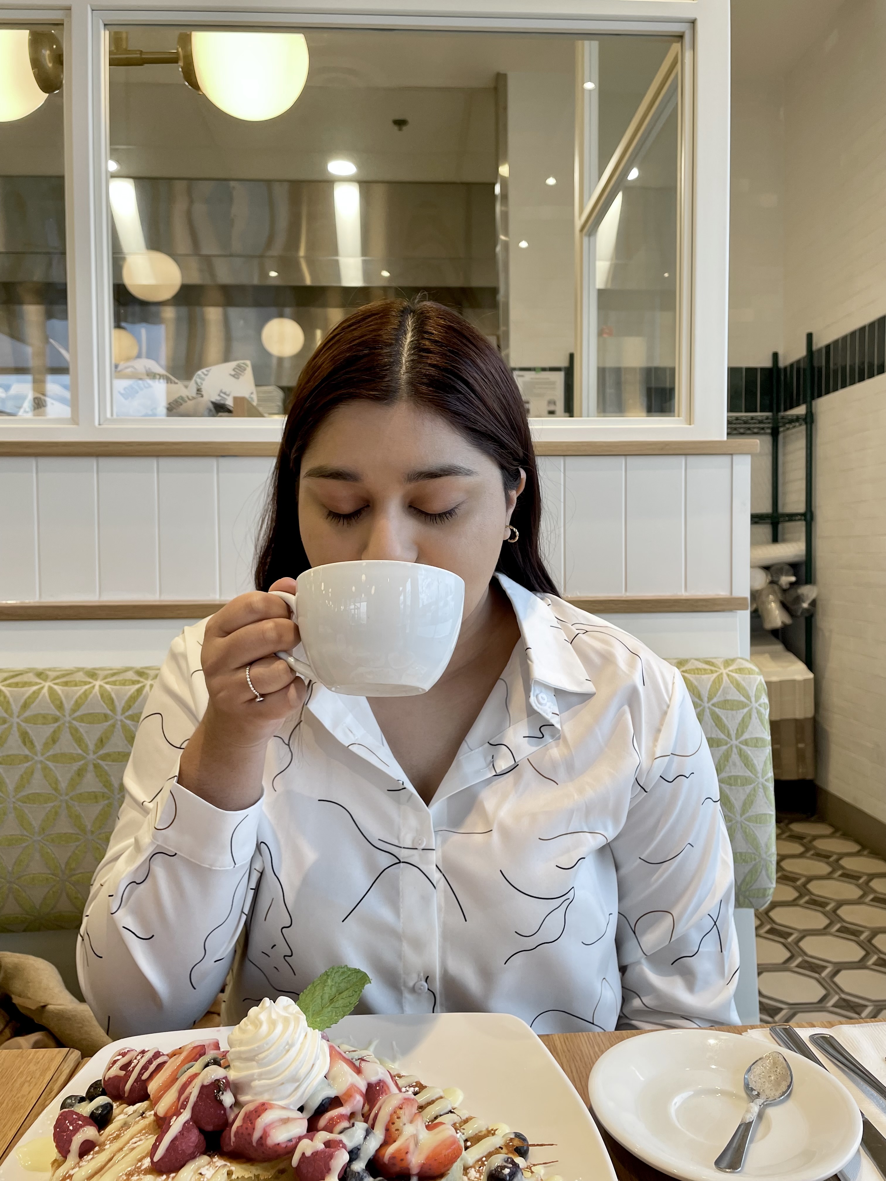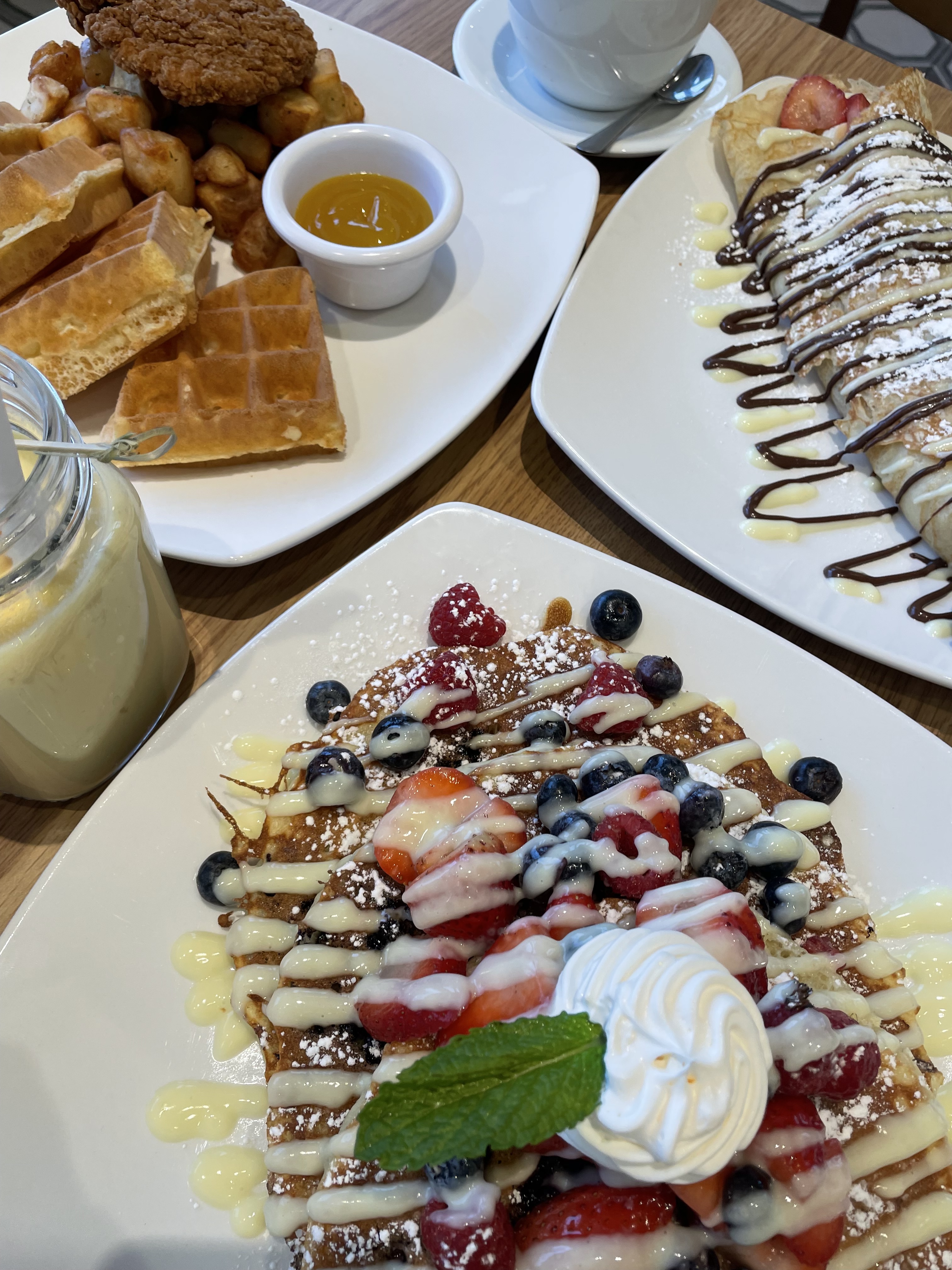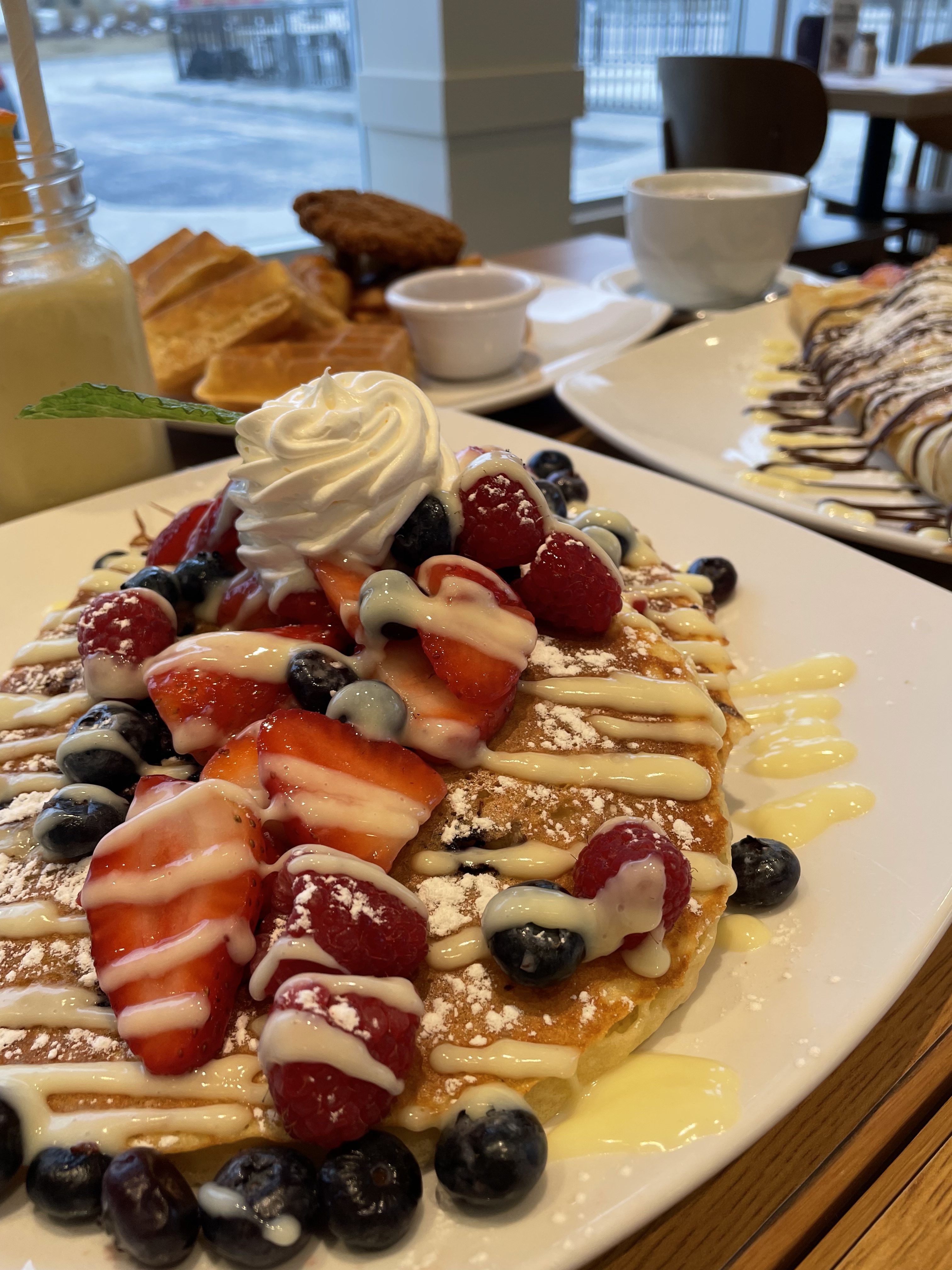 Next, I ordered something a little sweeter! The Triple Berry Pancakes were so beautiful. It consists of blueberry pancakes and is topped with so much colour because it is decked out with strawberries, blueberries, English Cream, whipped cream and fresh mint! The pancakes were so soft and fluffy, and were really a stand out item! If you want a picture for IG, this is the item you NEED to get! It’s so beautiful and tasty, there is nothing that is more natural, fresh and delicious! Trust me, it’s amazing!