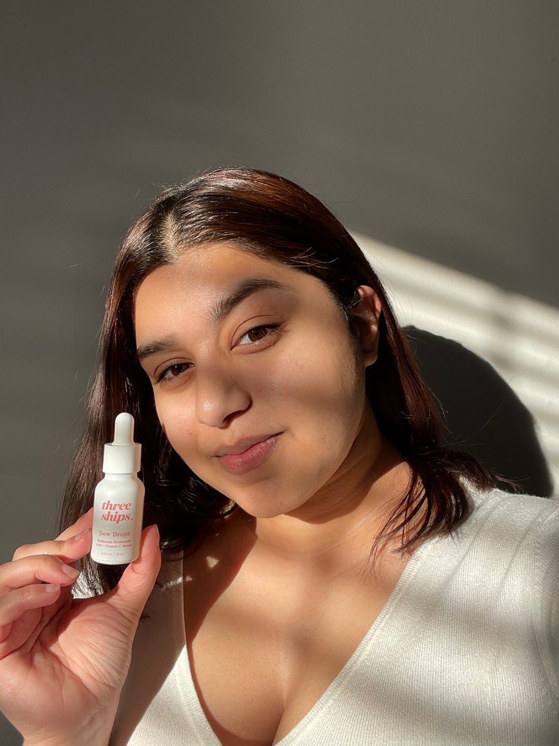 A product that I use religiously and literally cannot get enough of is the Dew Drops Mushroom Hyaluronic Acid + Vitamin C Serum! This has to be one of the most natural and effective serums I’ve used to date! It is extremely hydrating and great for all skin types! It noticeably brightened and balanced the look of my skin and really helped my skin look plump and full of moisture! It was so lightweight and absorbed into the skin really well, I had no issues layering any makeup on top, it keeps my skin feeling hydrated all day! The ingredients in these products, as well as all Three Ships products, are absolutely transparent. Knowing what I’m putting on my face and having it be so pure and natural makes it so effortless when deciding what I should use on a daily basis!