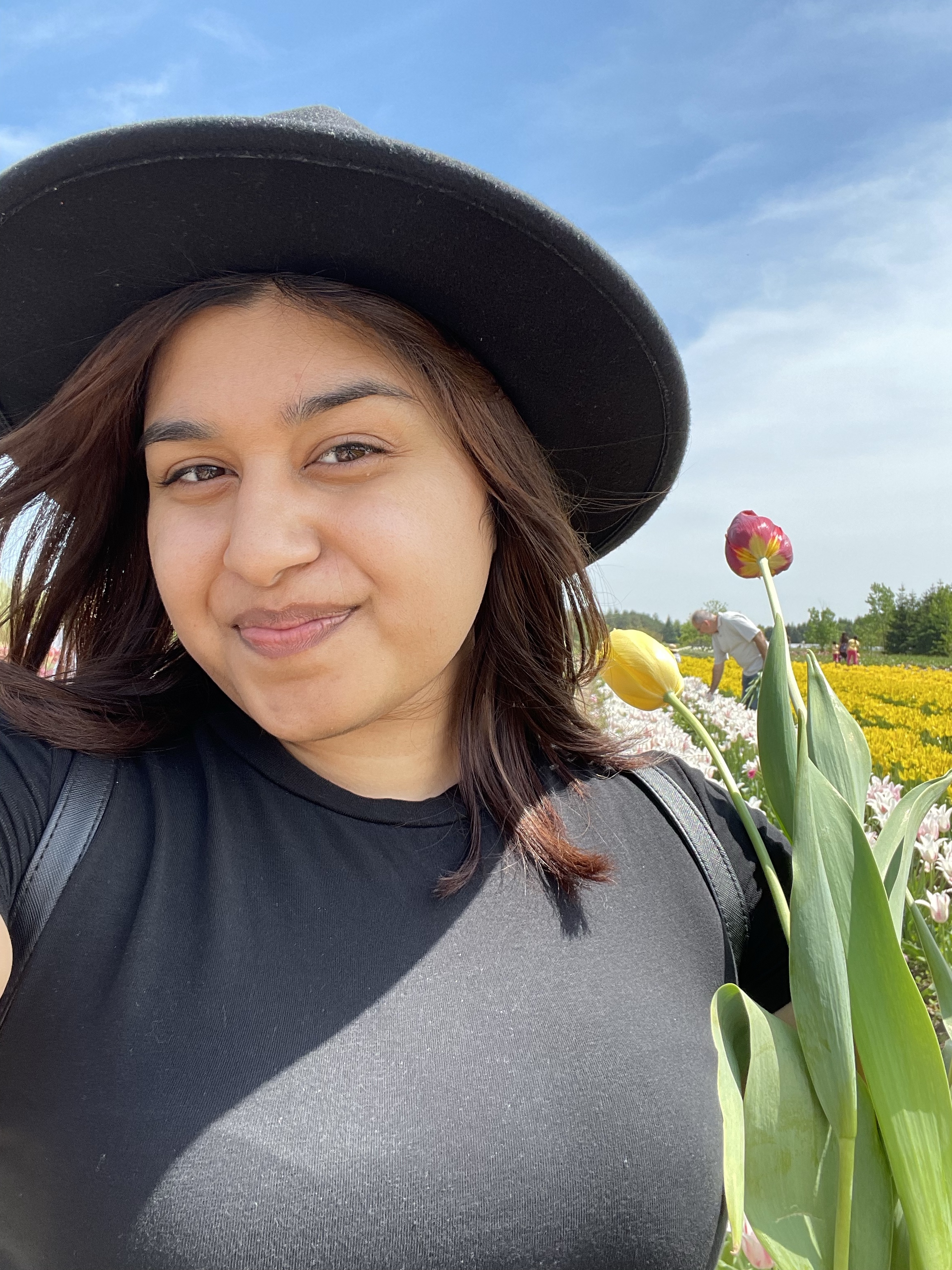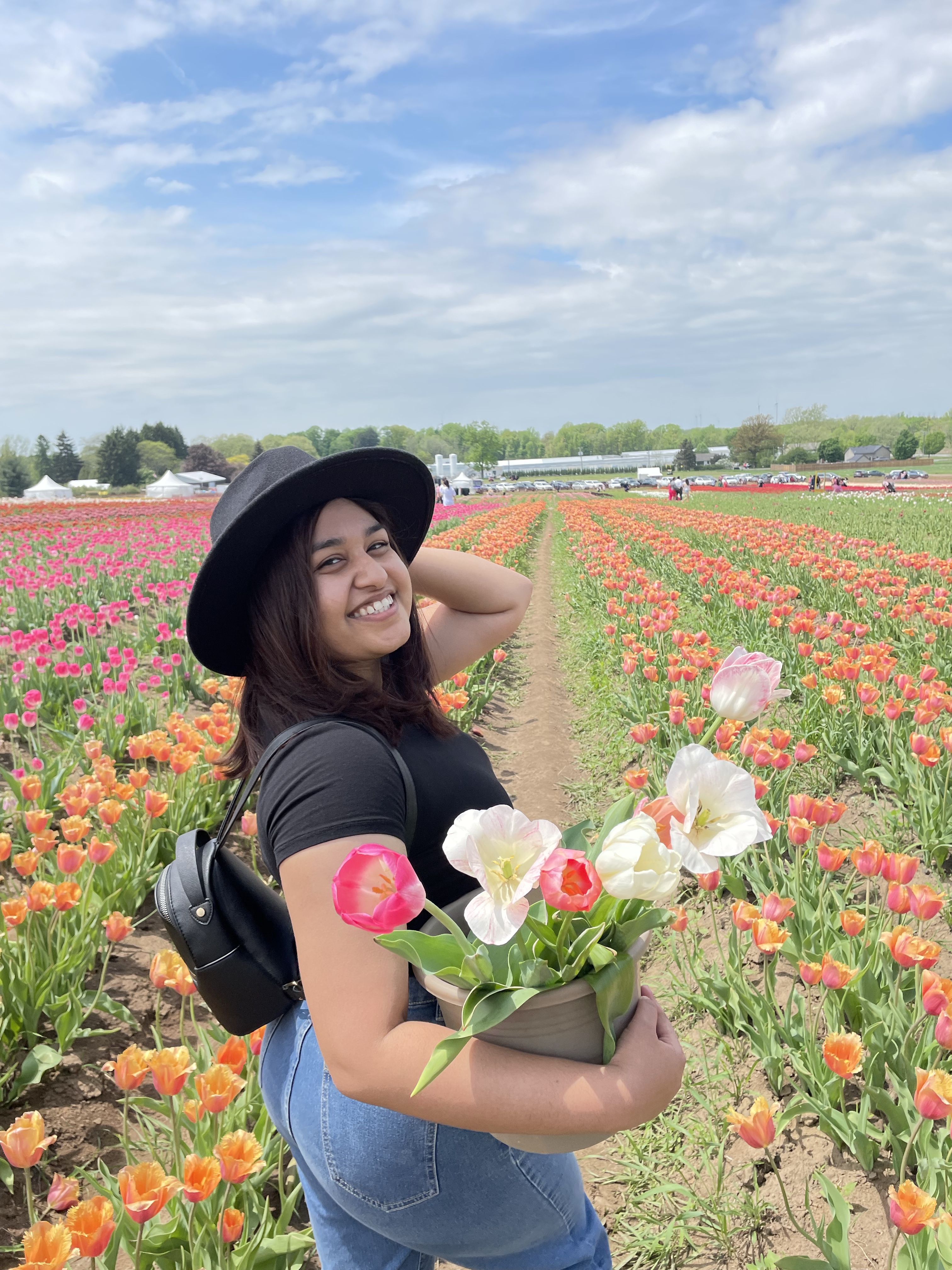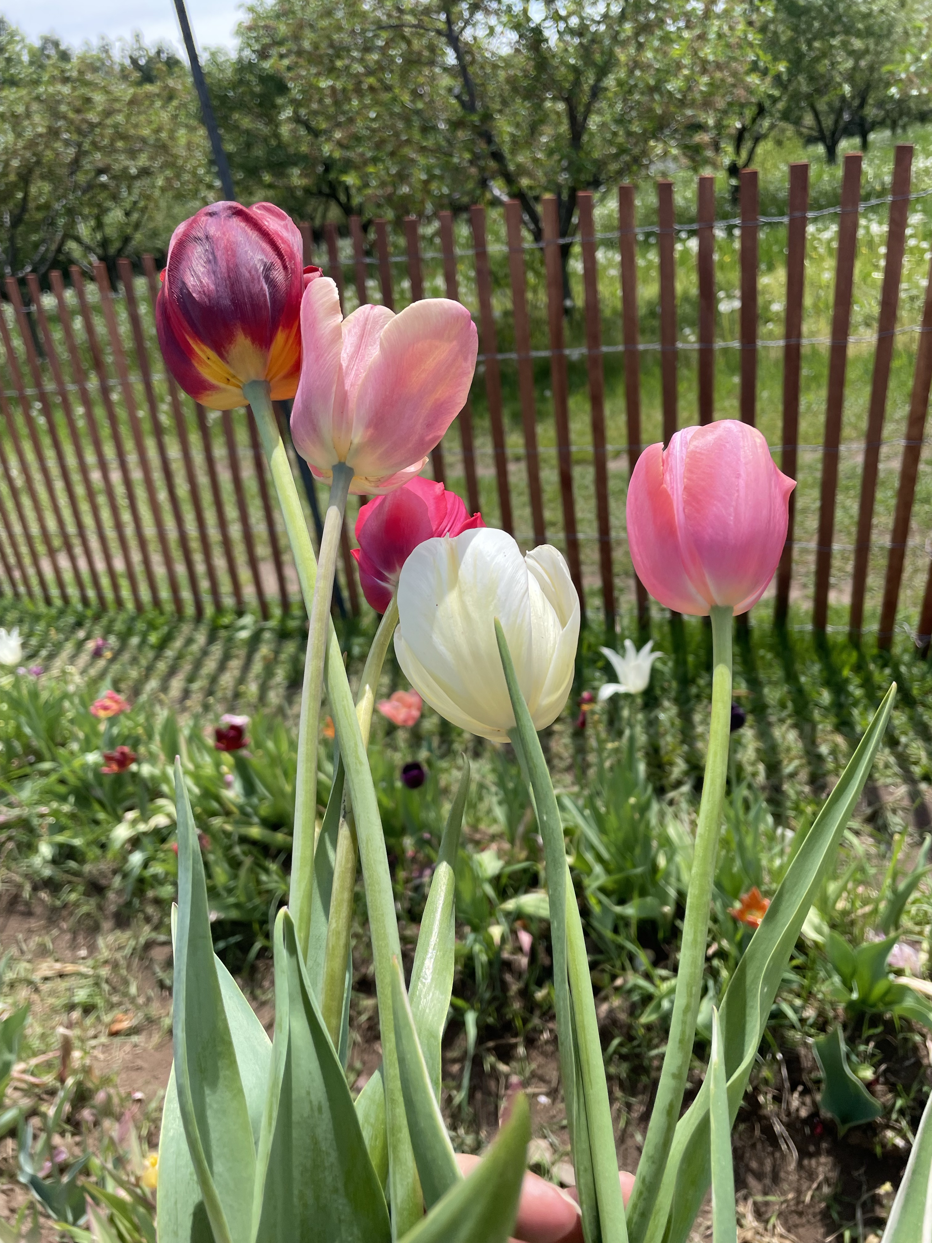 We started with the first few rows and picked the flowers that caught our eye, each creating a theme and colour palette for our bouquets! There were so many different colours, types, shades, and hybrids to choose from! We learned how to correctly pick the tulips which were holding close to the root, twisting and pulling up! This made it significantly easier when picking!