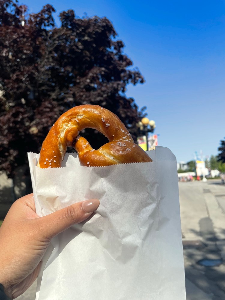 Next we walked past many candle and scent based vendors, these booths smelled so great but there were many crystal shops that caught my eye, one in particular was really beautifully presented, it was called sister witches and their crystals were gorgeous, they were really knowledgeable on the items they were selling! Next, we passed by a pretzel booth that looked too delicious to pass up, we got one and it was so soft and fresh!