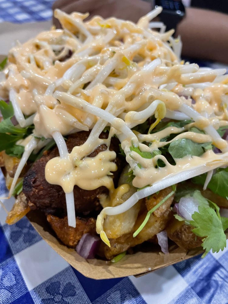 To eat we went over to Supa Fries and got their new Hot Hakka Fries, which had Korean Hot chicken, onions, bean sprouts, cilantro and a creamy spicy sauce on top. While this wasn’t bad, I do feel like it lacked flavour, especially compared to their Bangkok Fries which was their new creation a few years ago, I would definitely recommend going with the Bangkok Fries instead, it’s a spin on a pad thai with fries instead of noodles and has much more flavour!