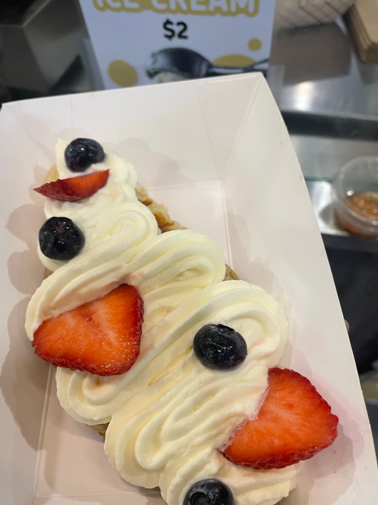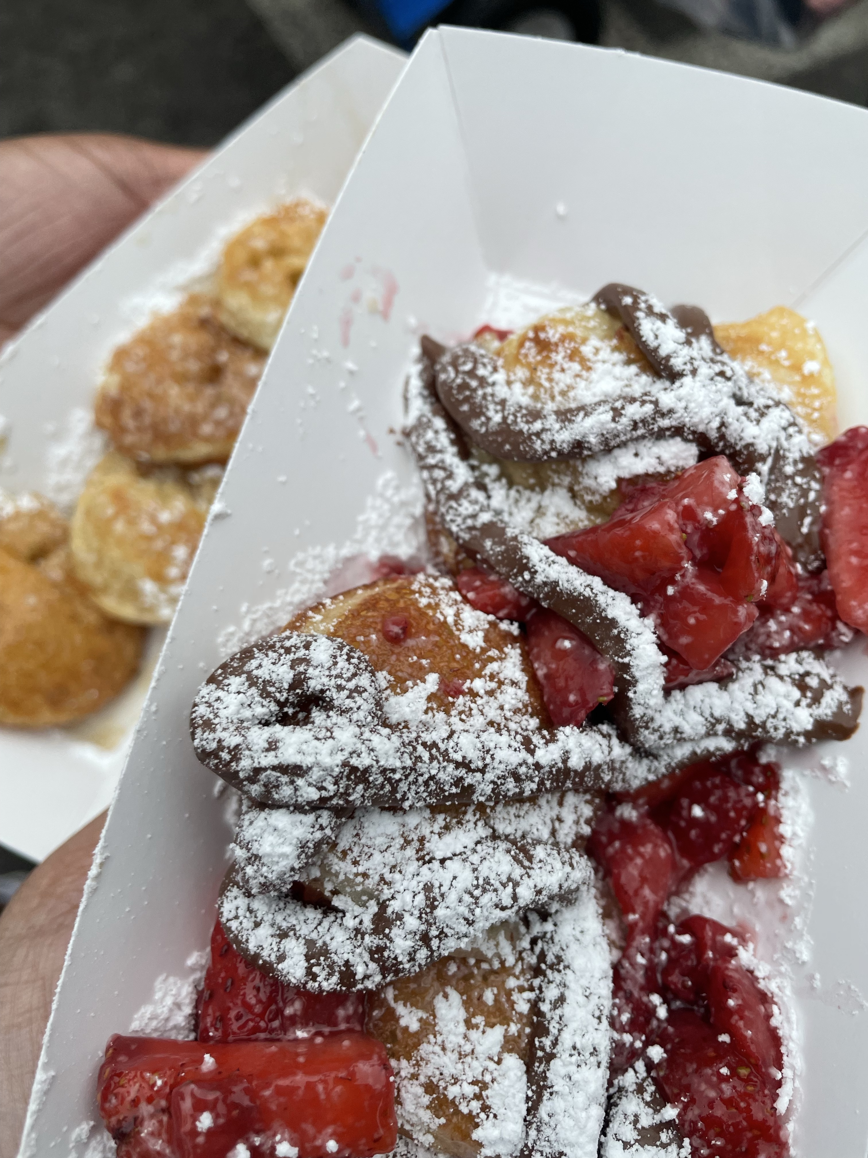 Next, we started walking back towards the exit and grabbed a few last minute treats! First we went to the mini pancake booth and this was stellar! I was a little apprehensive at first because they were making these really quickly and I wasn’t sure if it was going to be cooked thoroughly but they were perfect! I got mine topped with Nutella, icing power and strawberries! My friend also got the signature maple syrup topped pancakes and they were awesome as well!