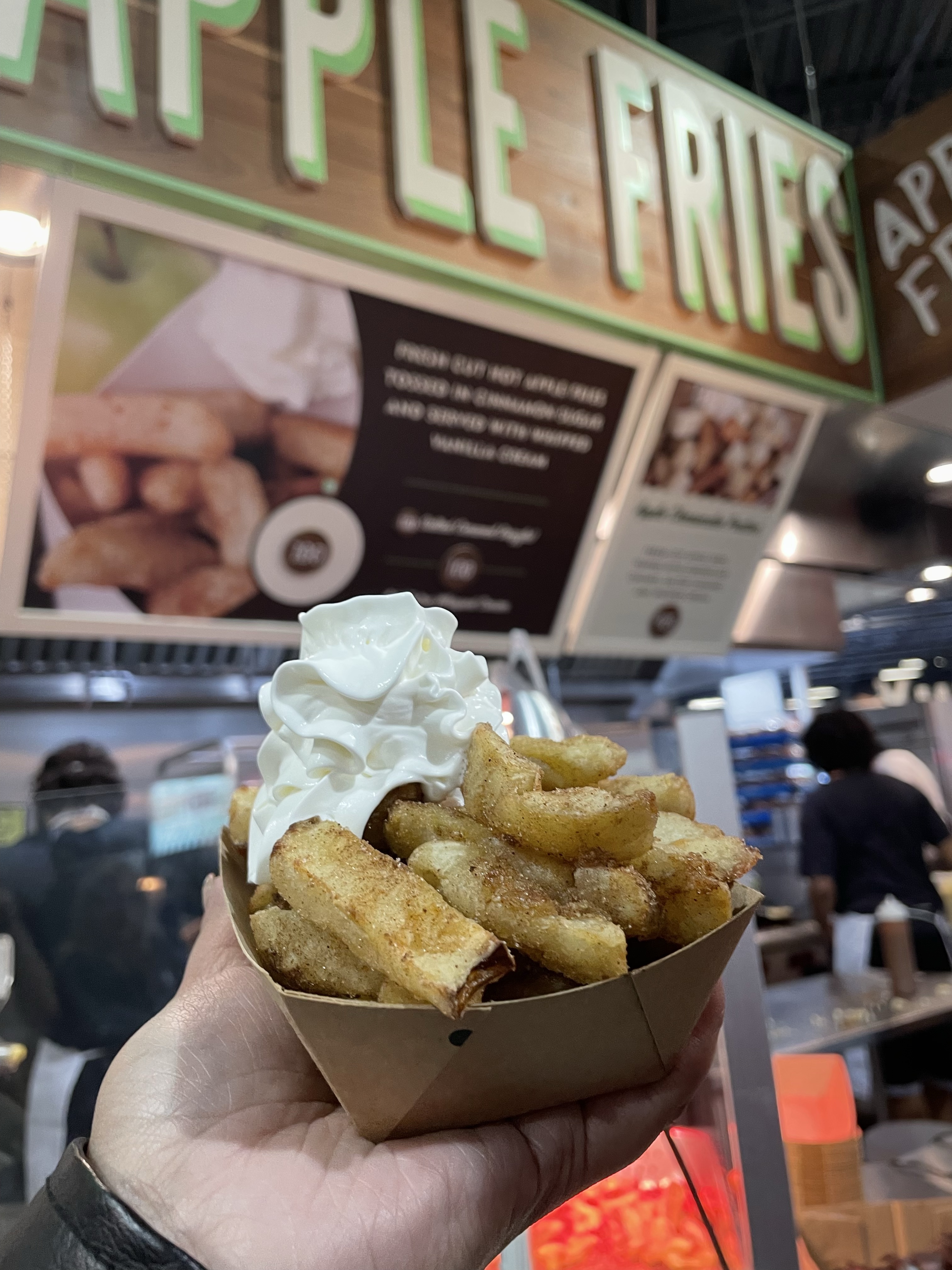 We wanted some more fried foods so we got the godzilla fries from the Japanese Street Food vendor and these were full of flavour! These were tossed in seasoning, and topped with Korean chicken, black sesame seeds, green onions and spicy mayo! They were so tasty, I really enjoyed these fries! The last thing we picked up at the food building was apple fries, I am a huge fan of apple pie and was really looking forward to this dessert but it was a little underwhelming, the apples were fairly sour and they weren’t as fresh as I would’ve liked them to be! I would say skip this dessert and definitely go for something else!
