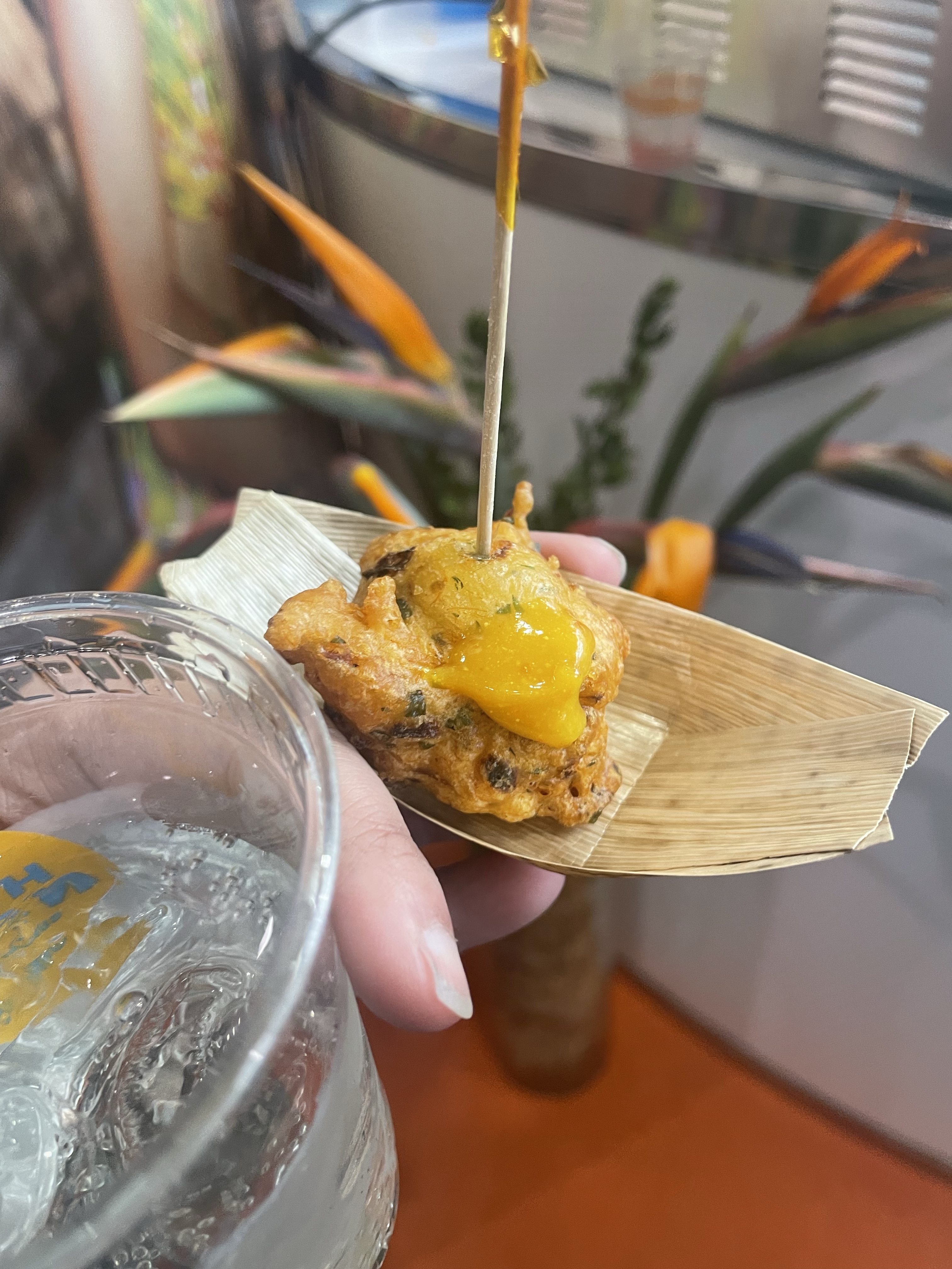 We kept walking around and tasting many different things, like natural lemonade, smoothie bowls, alcohol infused honey, and one of my favourite samples for the day was the Bajan Fish Cake, it was battered with spices and fried then served with a hot sauce or cream sauce! It was crispy, full of flavour and super delicious!