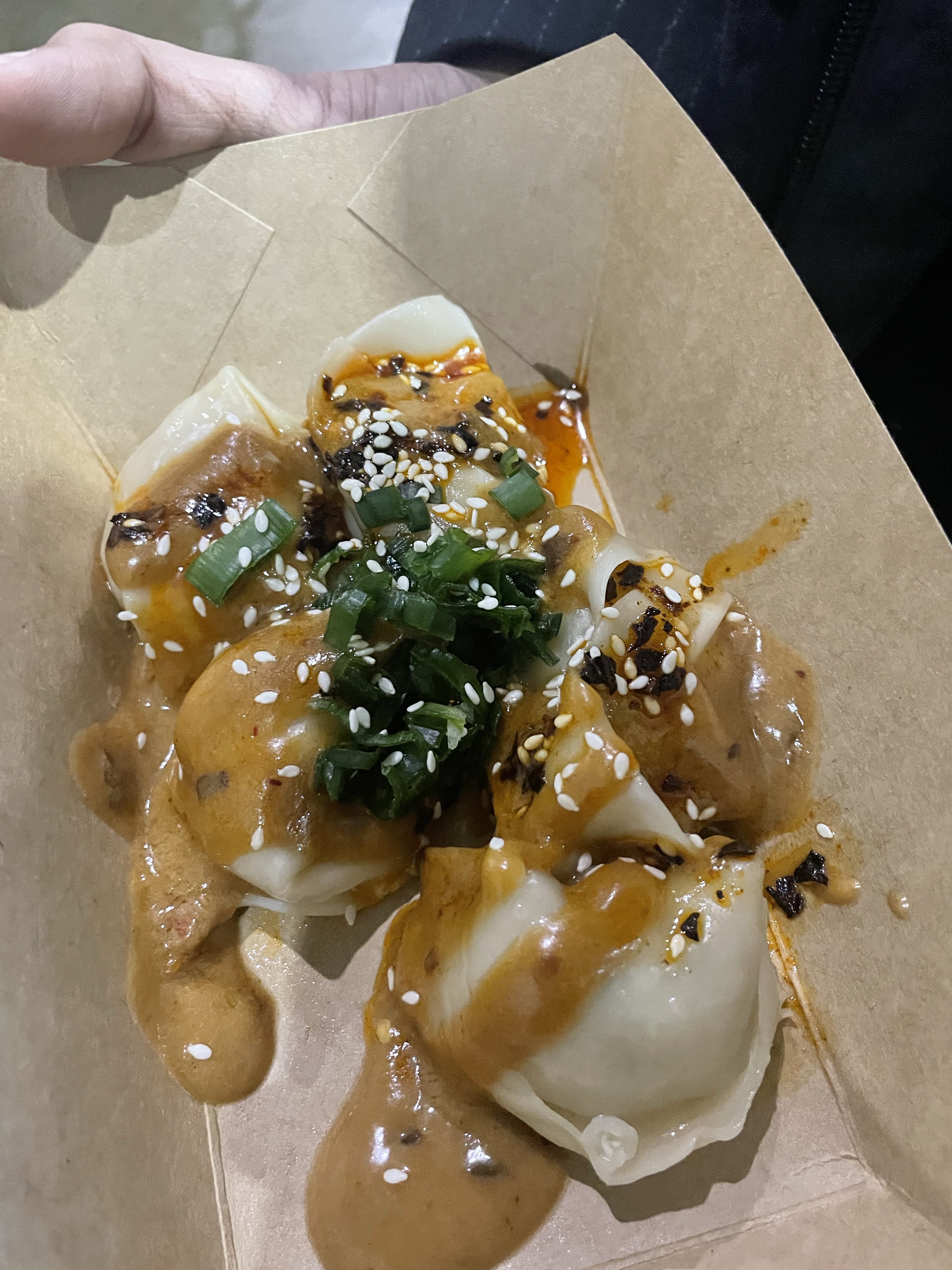 We were feeling a little hungry and wanted to get something to eat, there was so much to choose from! We decided to get some chicken dumplings and they were so delicious! We topped the dumplings with peanut sauce as well as chilli oil and it was awesome! It was such a nice light bite as we were walking around and eating and drinking so much!