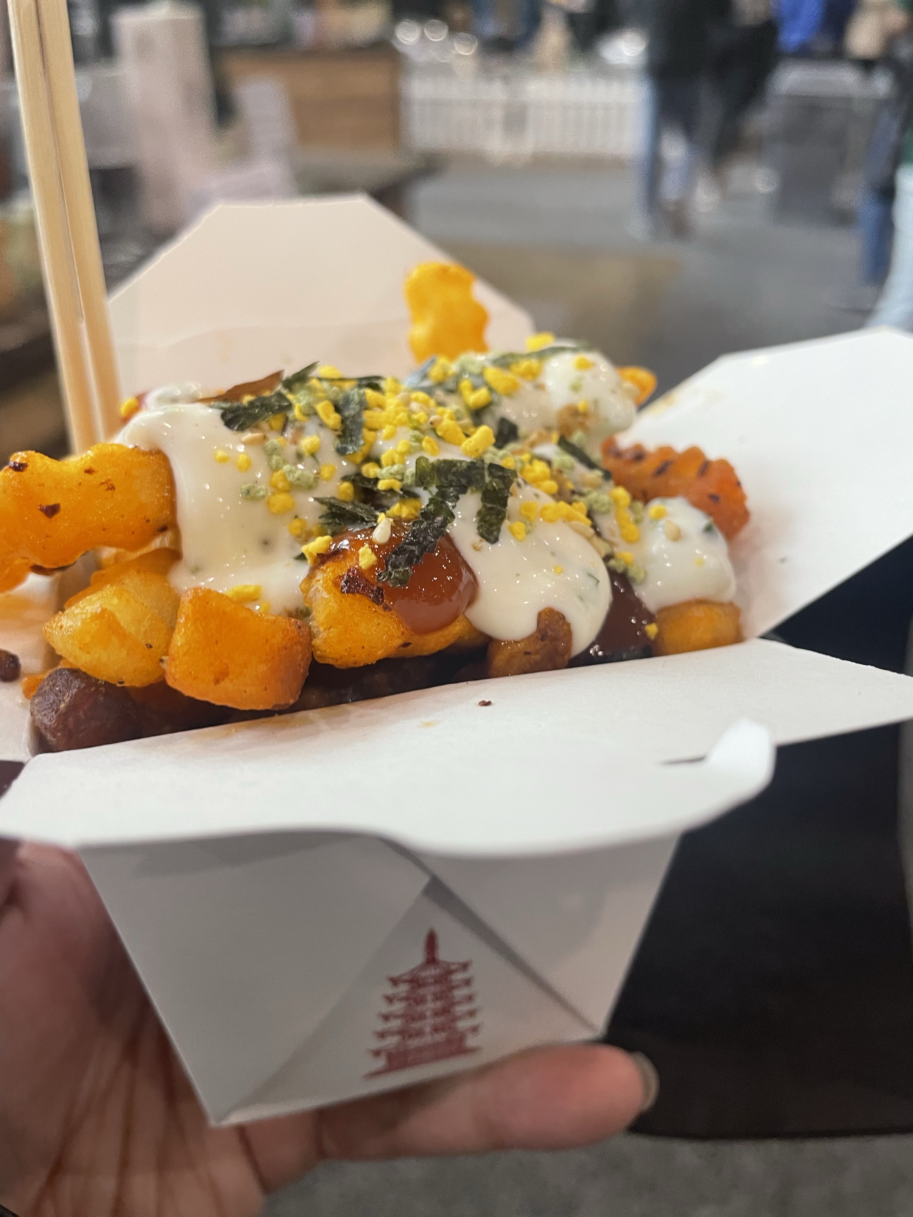 One of my favourite foods for the day was the Tokyo fries, this was definitely a hidden gem and was so worth it! It was seasoned perfectly and topped with so many sauces and garnishes, and was packaged up in a cute mini Chinese take-out container! We also had some mutton rolls from Reggie’s Rolls but they weren’t my personal fav!