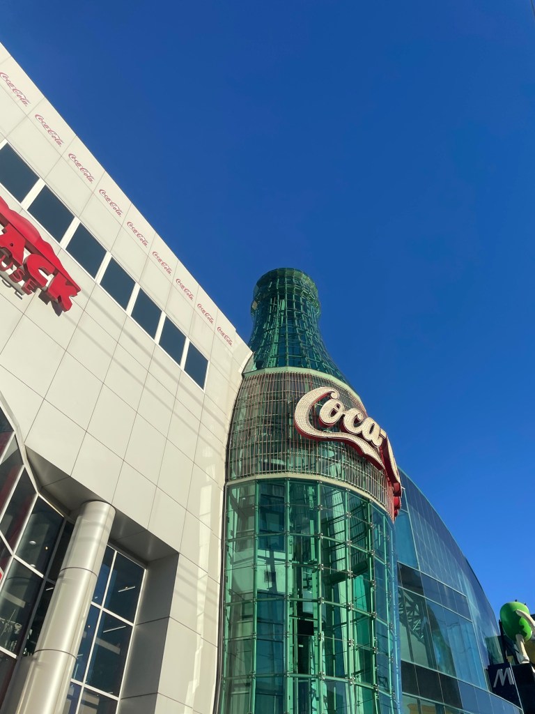 Las Vegas is known for awesome shows, great experiences and so much more, but something that falls under the radar is the huge Coca-Cola store that is located right on the strip and you can see from miles away because of the huge glass bottle of Coca-Cola at the entrance! It is larger than life and offers more than just shopping —it has a unique experience that allows you to try some of the world’s most beloved beverages.