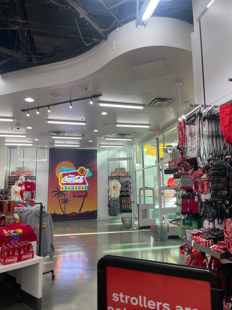 Entering the store is an experience on its own, you’re greeted with an array of red and white, the walls, decor, all merch items are in these iconic colors! The store is a multi-leveled experience dedicated to all things Coca-Cola. Whether you’re a die-hard fan or simply curious, there’s something for everyone here.